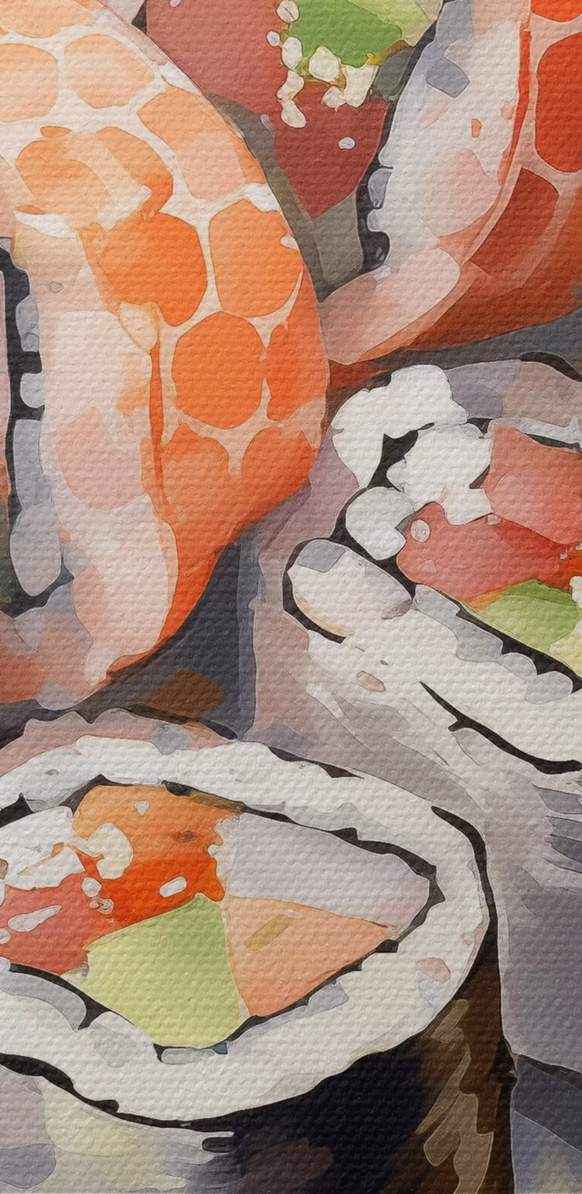 Кругла картина Суші на тарілці, акварель, квітковий, японський r41179