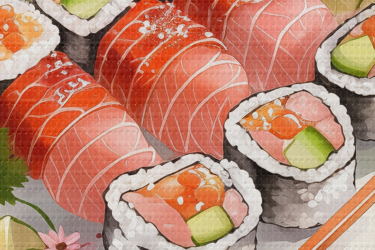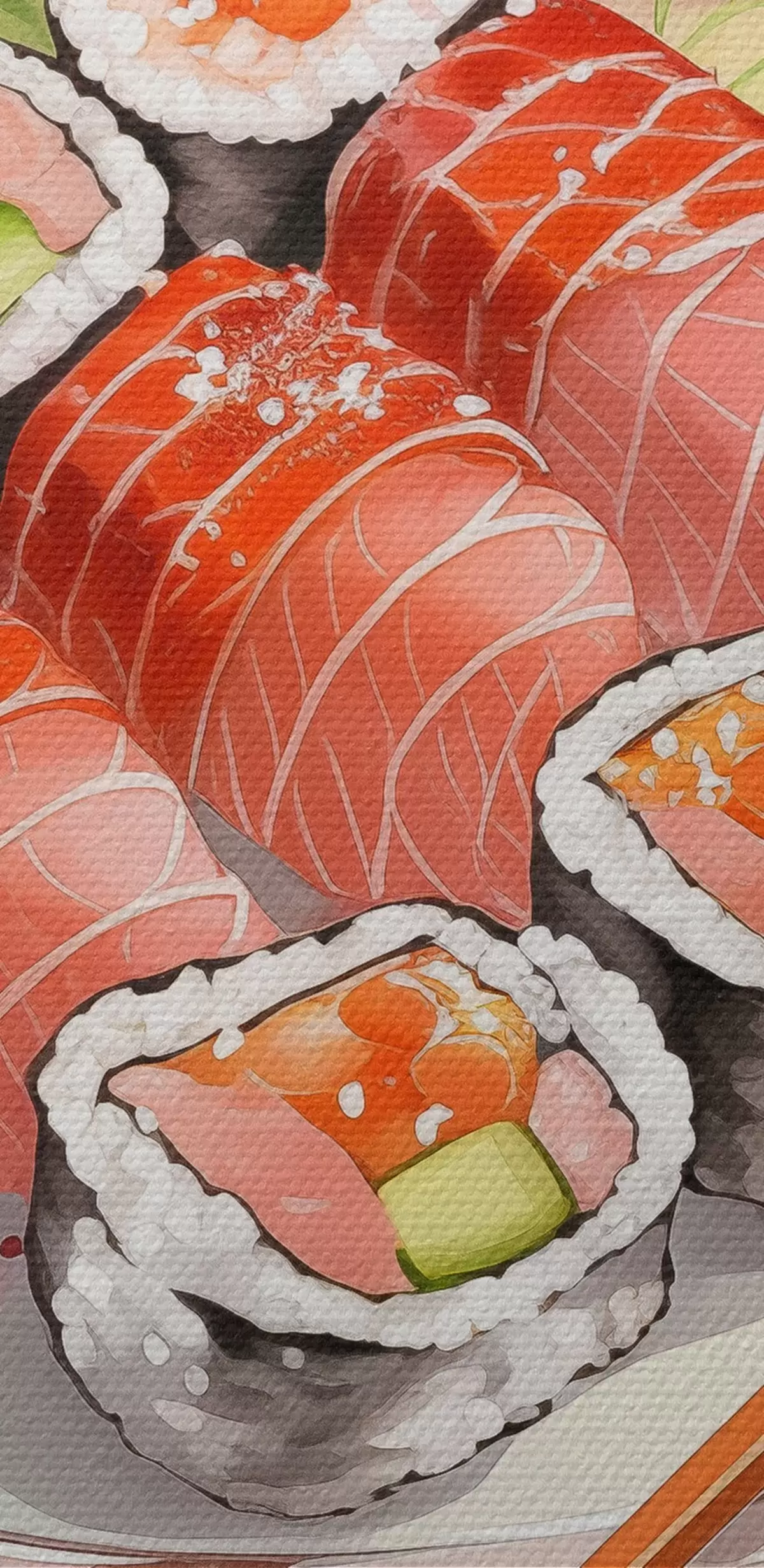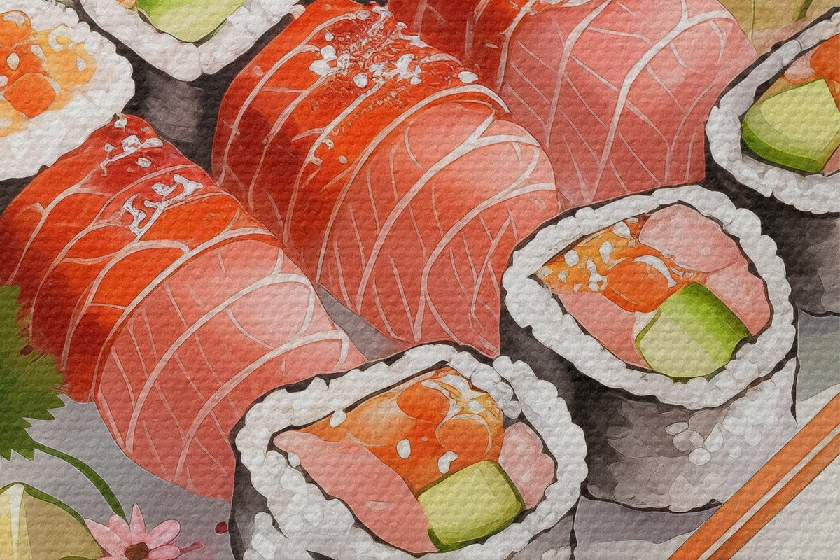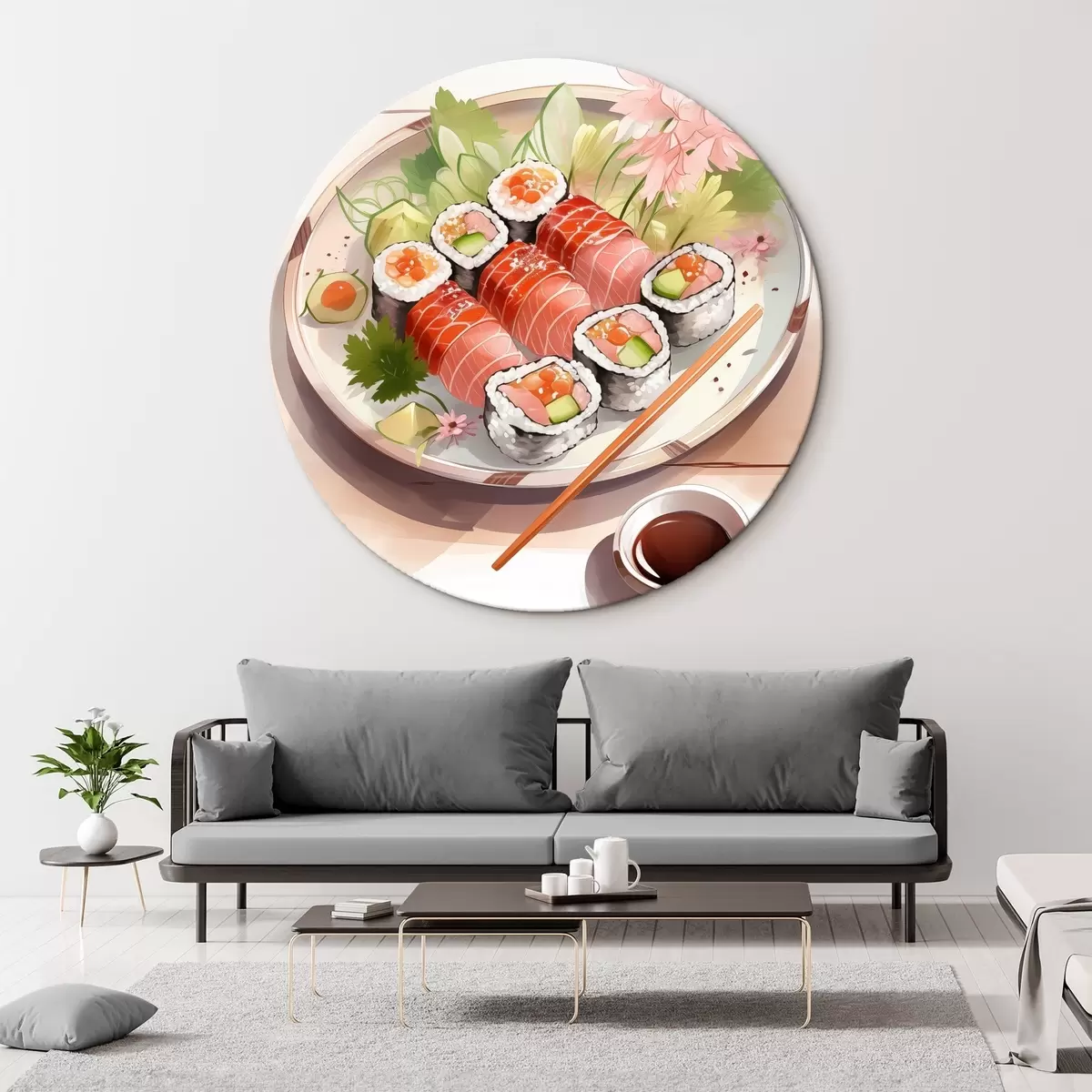 Кругла картина Акварельні суші, квіткові, японські r41181