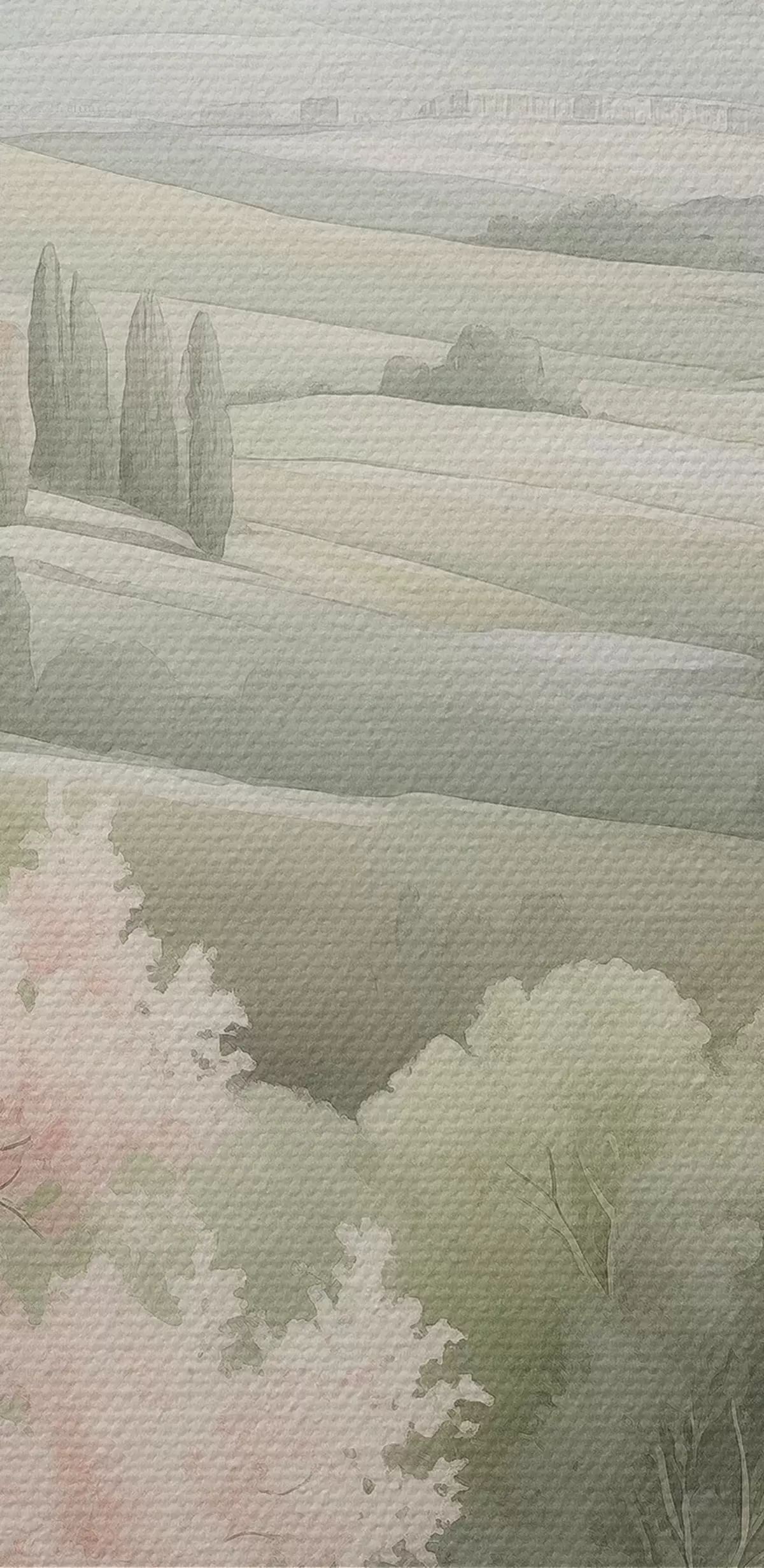 Кругла картина Акварельна природа, ніжні кольори, троянди, дерева, зелені пагорби Nr r41223