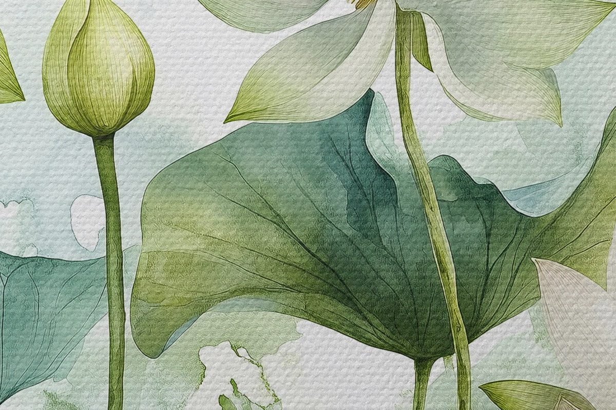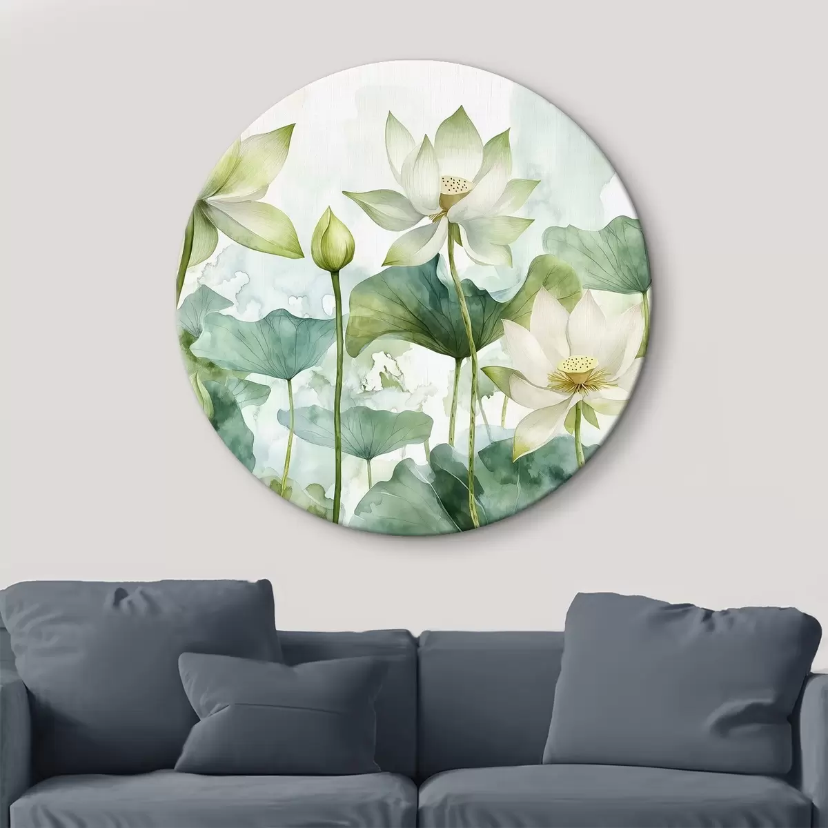 Кругла картина Акварельні лотоси, пишна зелень r41226