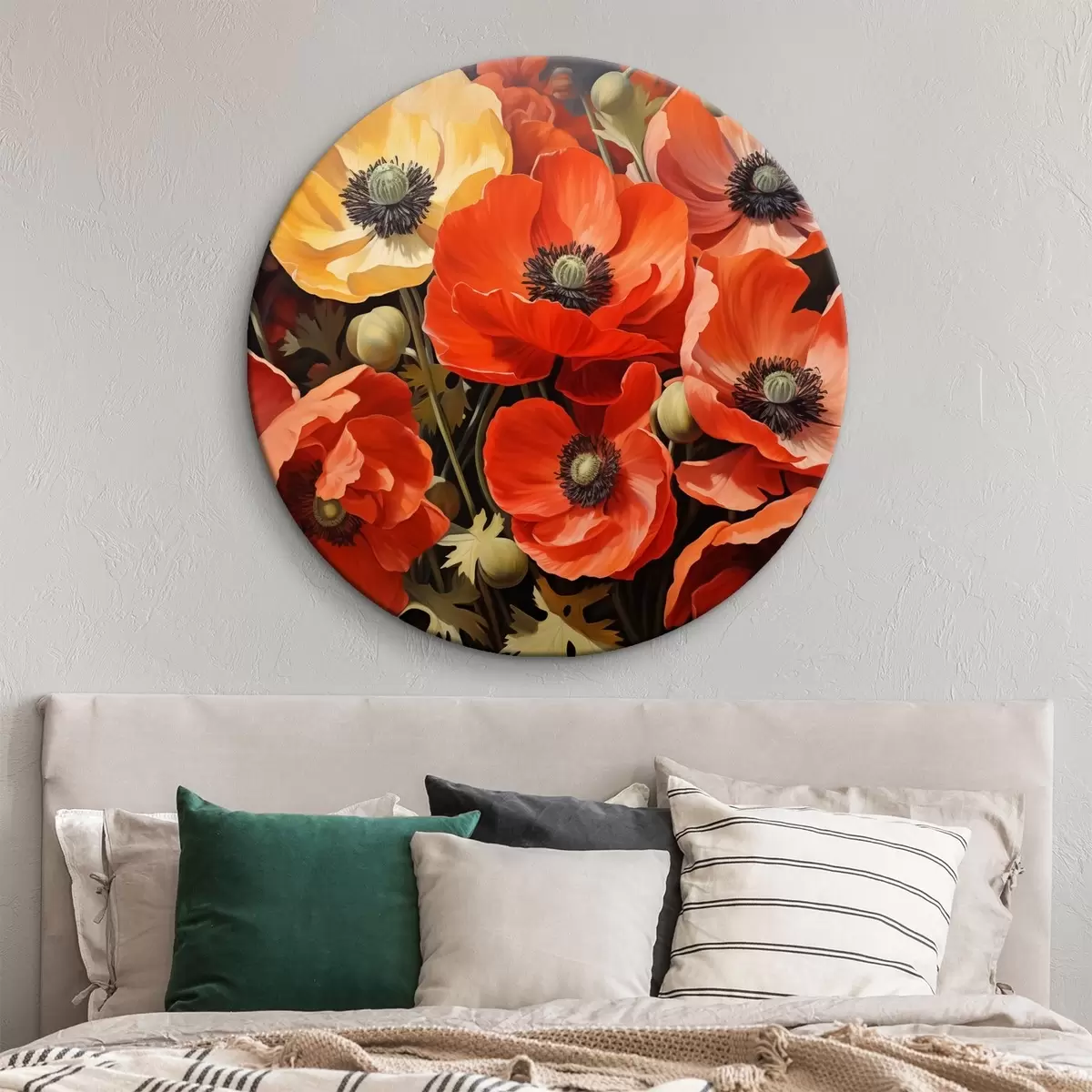Кругла картина Мак, червоний і помаранчевий Nr r41243