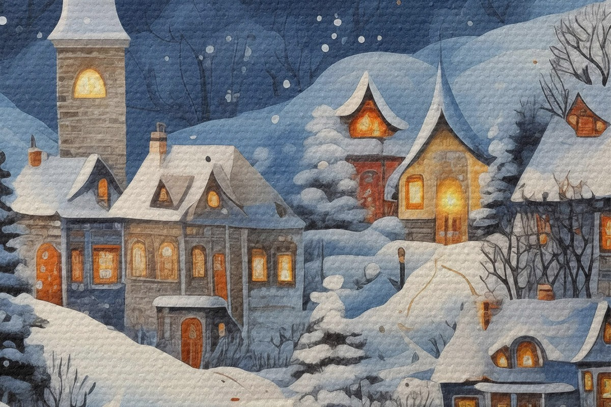 Кругла картина Зимовий пейзаж із засніженими заміськими будинками на тлі зоряного нічного неба Nr r41275