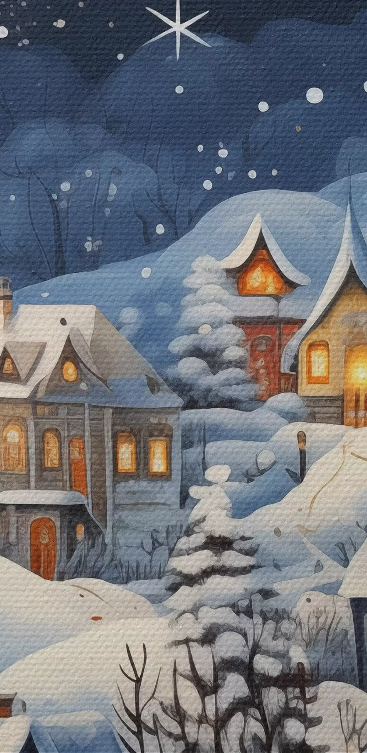 Кругла картина Зимовий пейзаж із засніженими заміськими будинками на тлі зоряного нічного неба Nr r41275