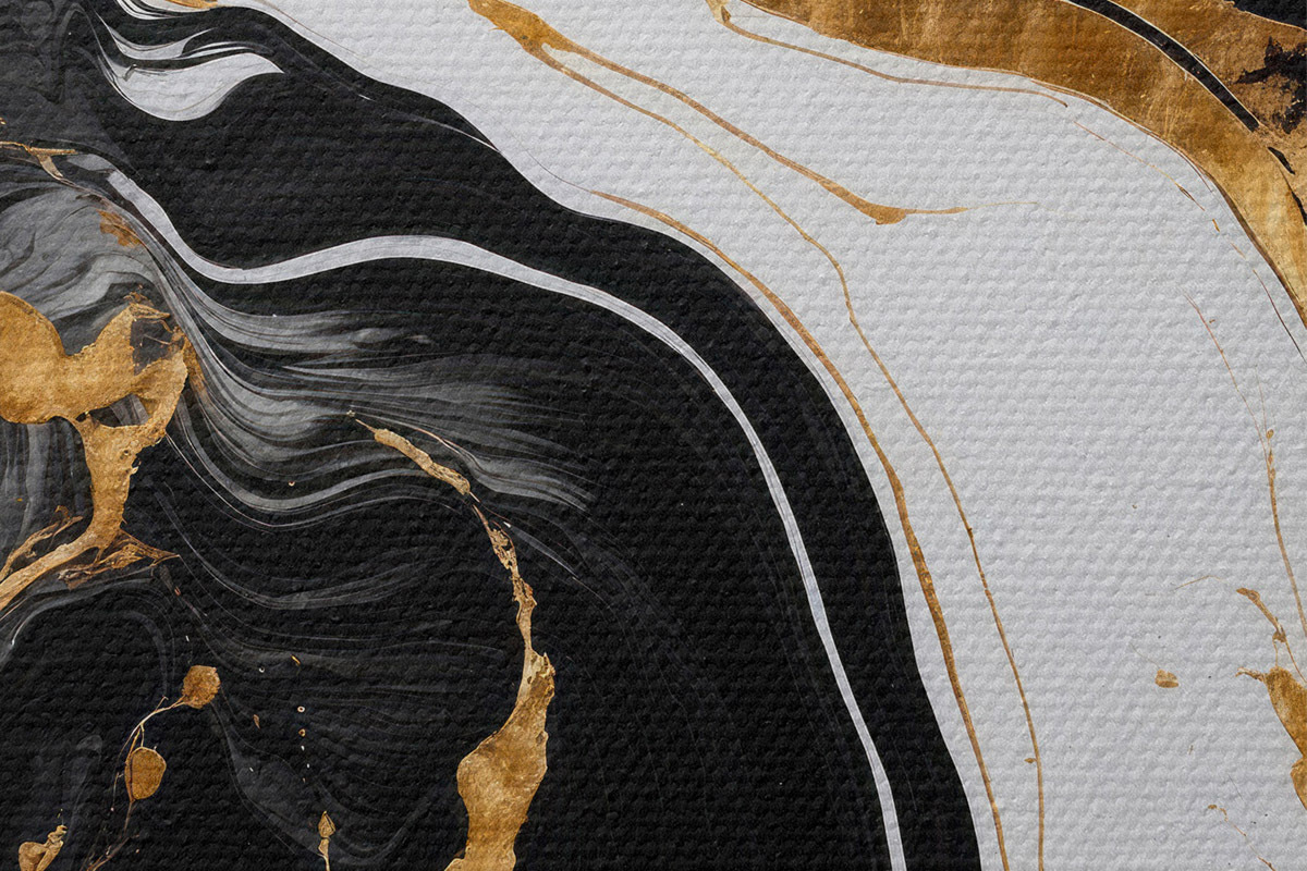 Кругла картина Чорно-біле абстрактне зображення з жовтими плямами r41292
