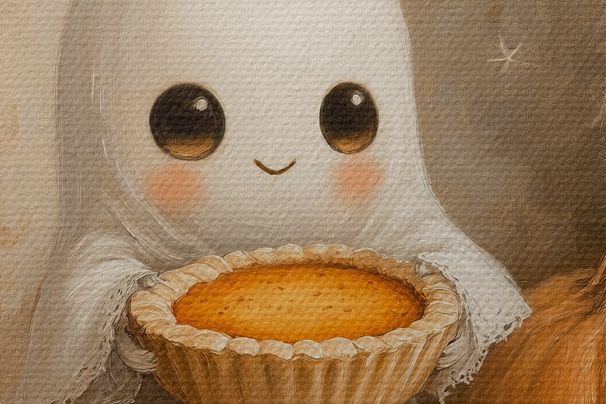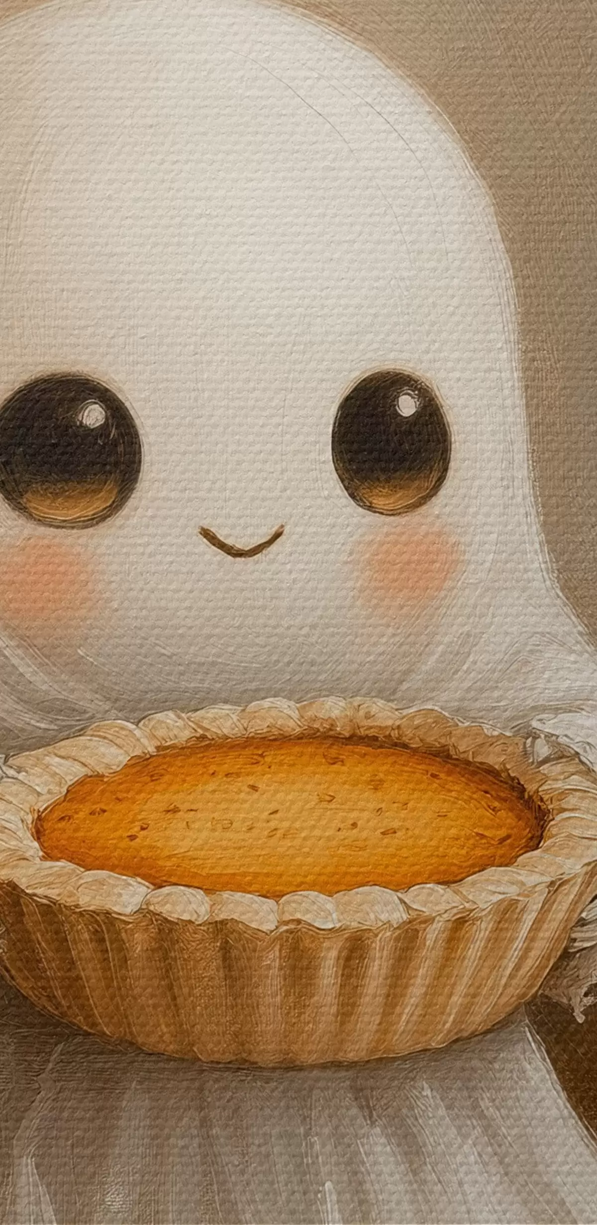 Кругла картина Привид тримає гарбузовий пиріг r41340