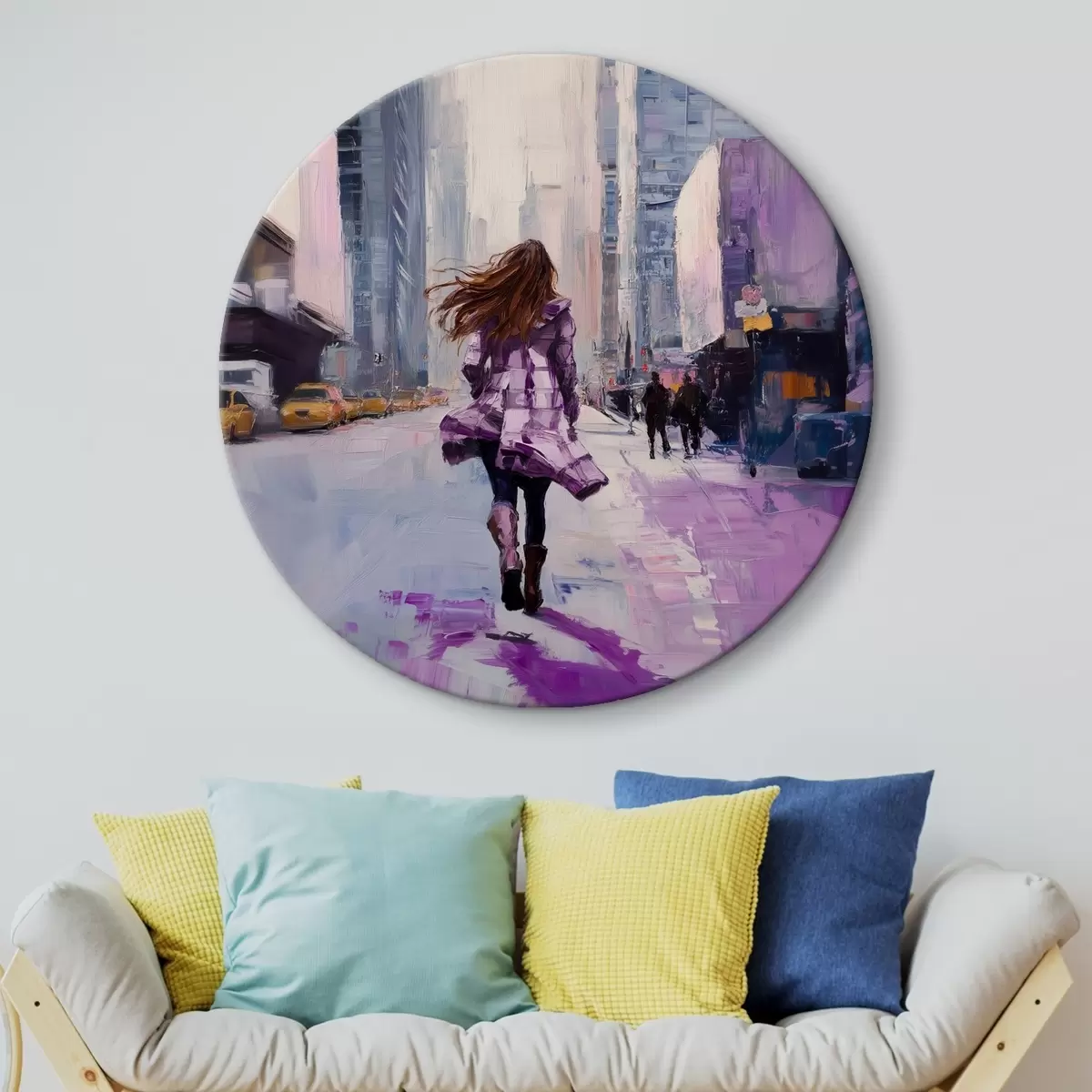 Кругла картина Дівчина у фіолетовому пальто Nr r41345