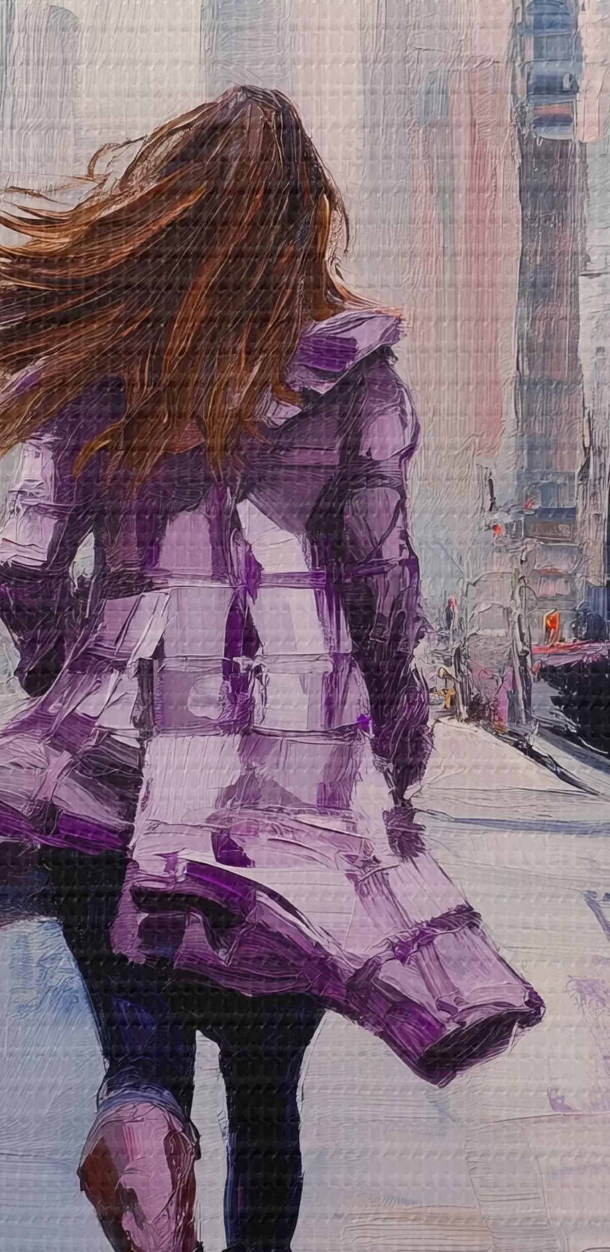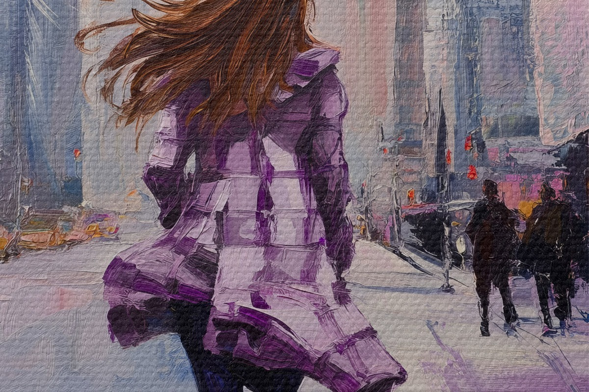 Кругла картина Дівчина у фіолетовому пальто Nr r41345