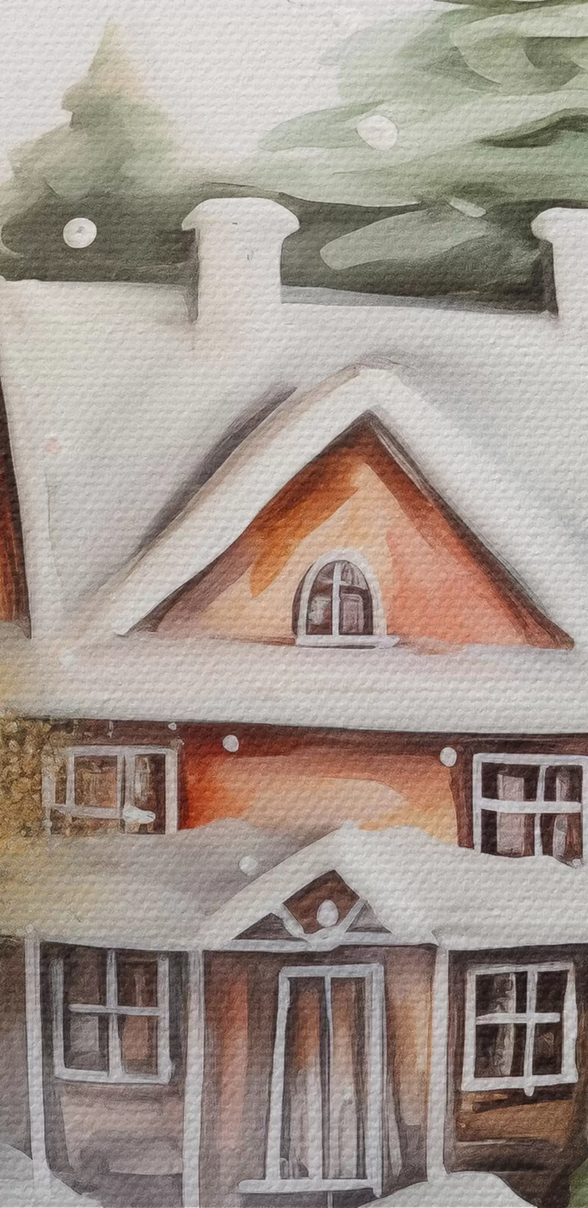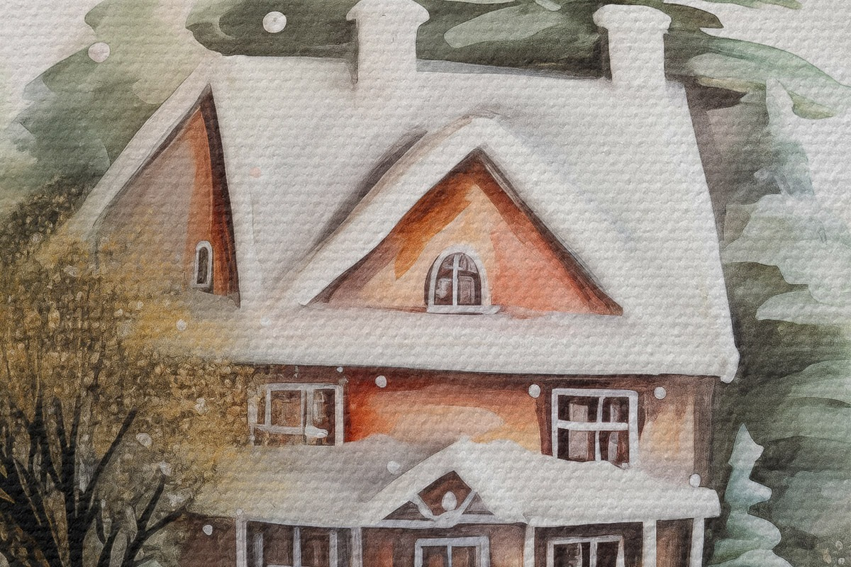 Кругла картина Кришталева куля з акварельним будинком і деревами на снігу Nr r41365