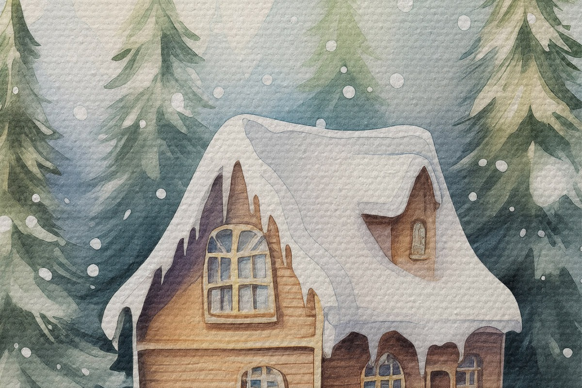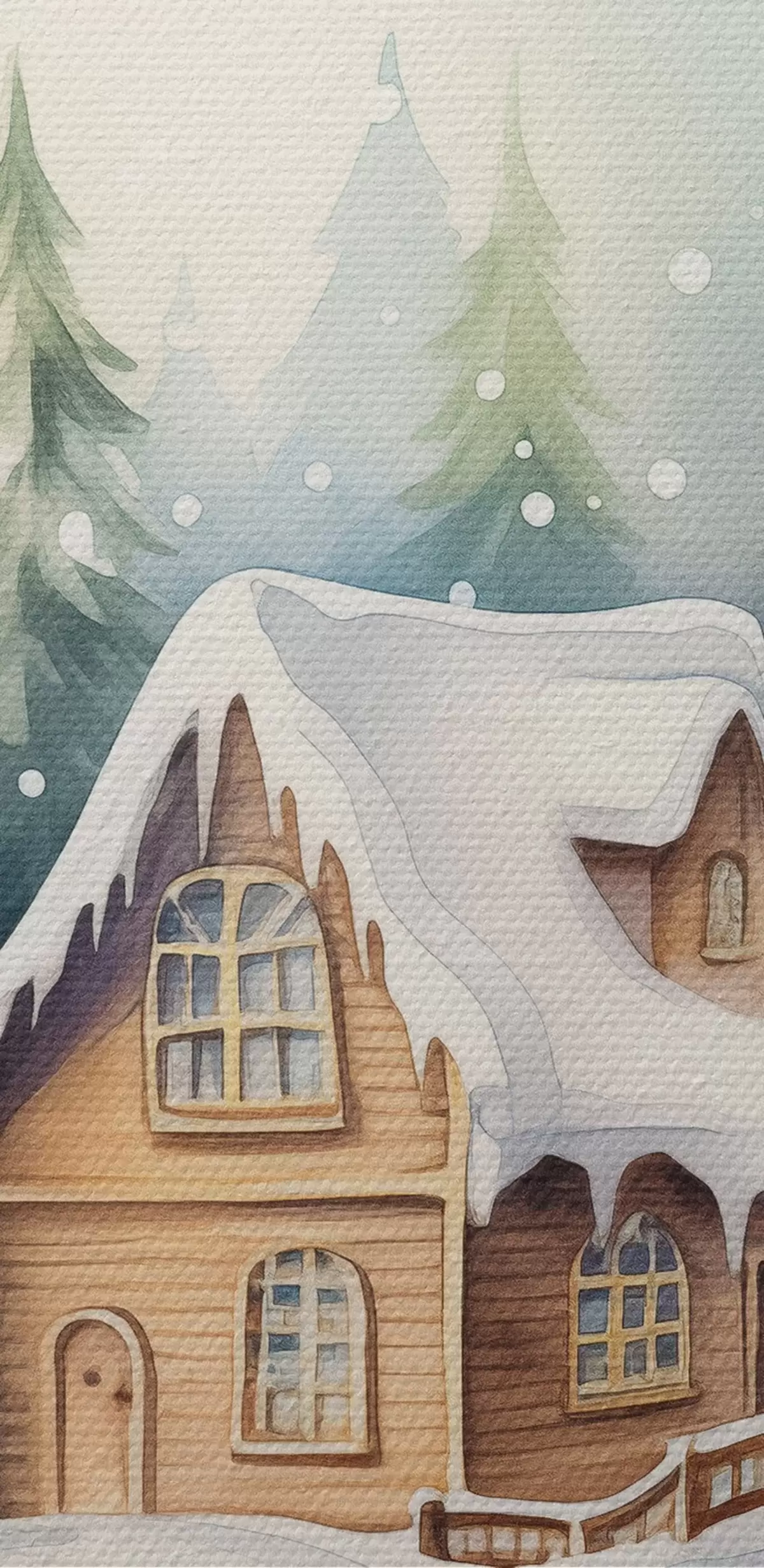 Кругла картина Акварельна кришталева куля із зимовими пейзажами, будиночок у лісі, сніг Nr r41366