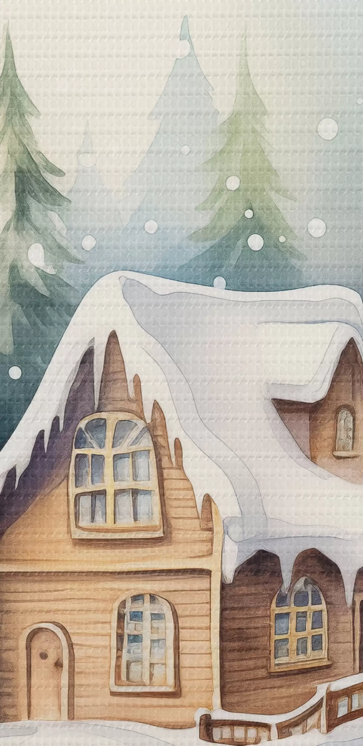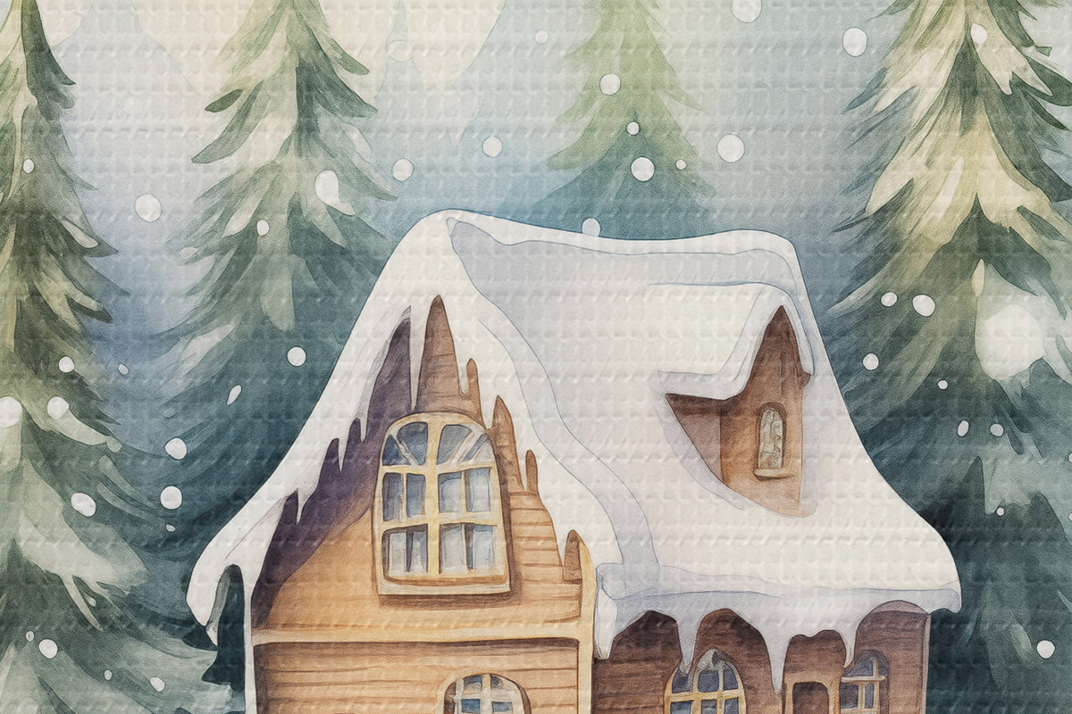 Кругла картина Акварельна кришталева куля із зимовими пейзажами, будиночок у лісі, сніг r41366