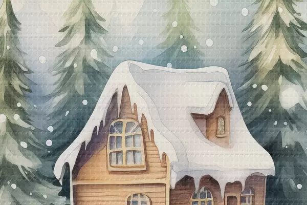 Кругла картина Акварельна кришталева куля із зимовими пейзажами, будиночок у лісі, сніг Nr r41366