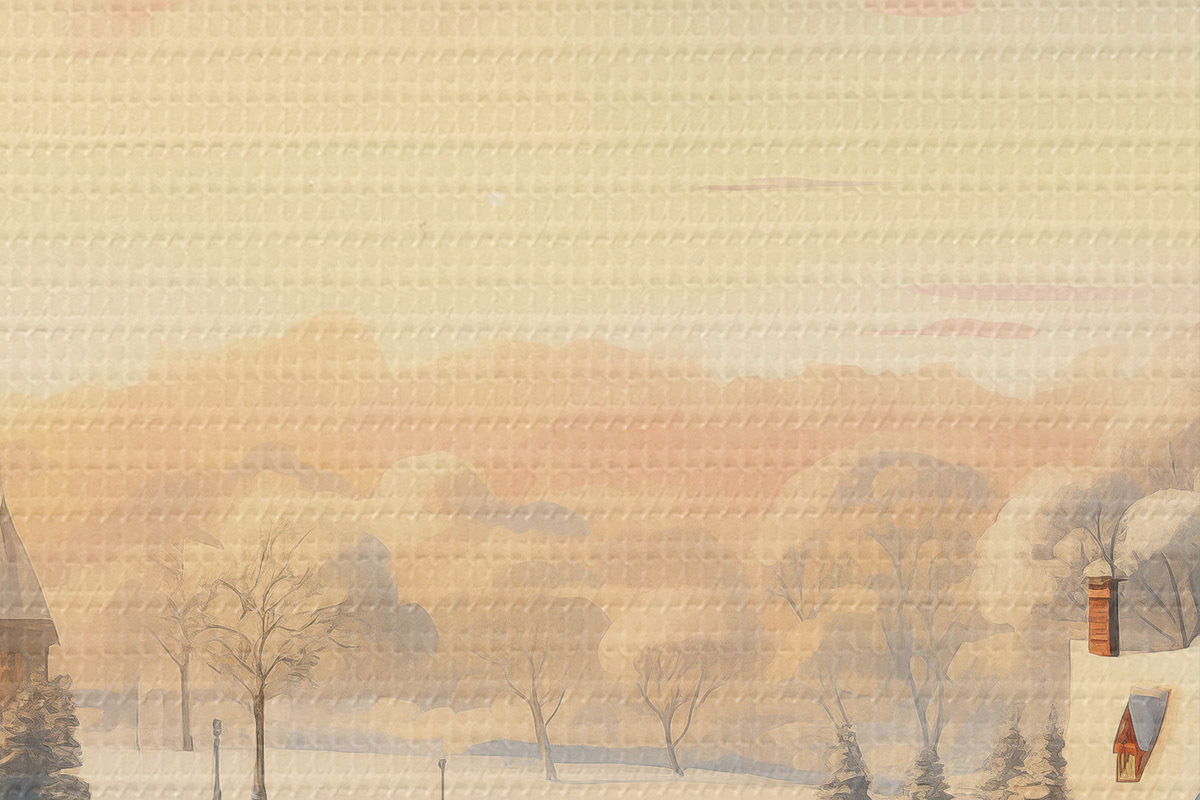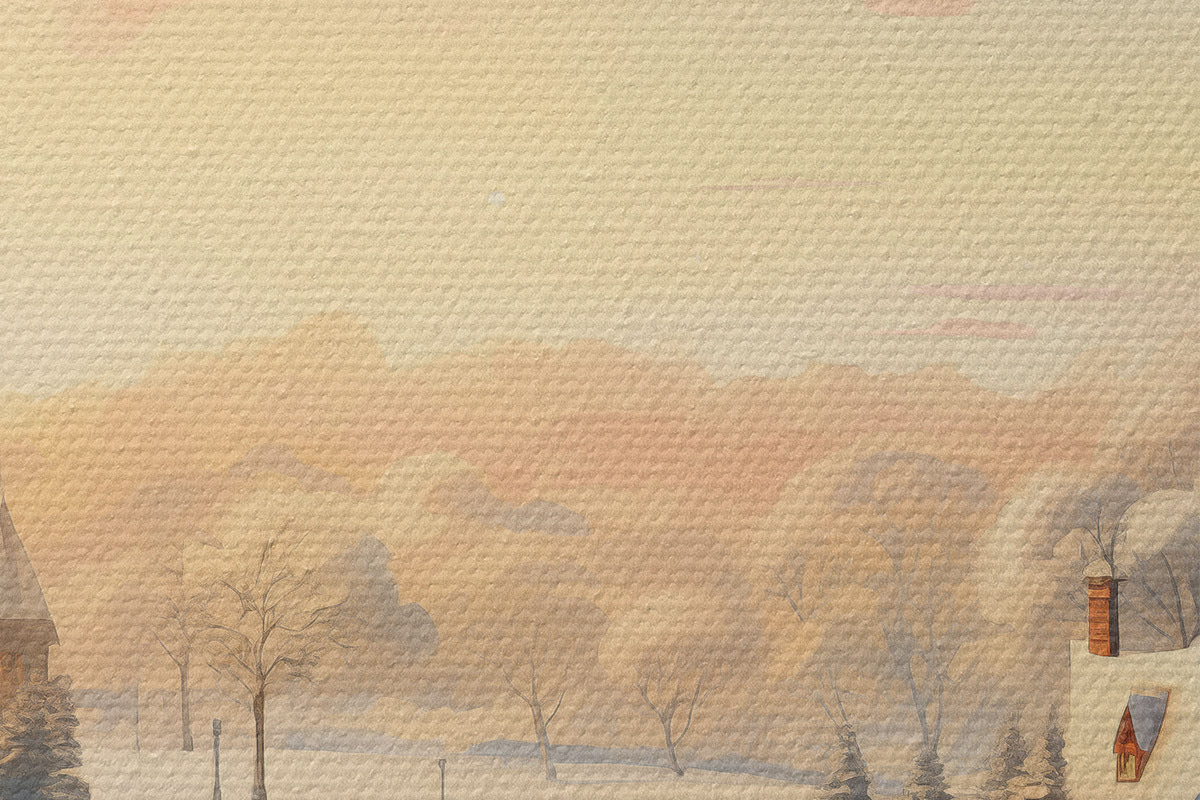 Кругла картина Зимова країна чудес, будинки, захід сонця, дерева, акварель Nr r41383