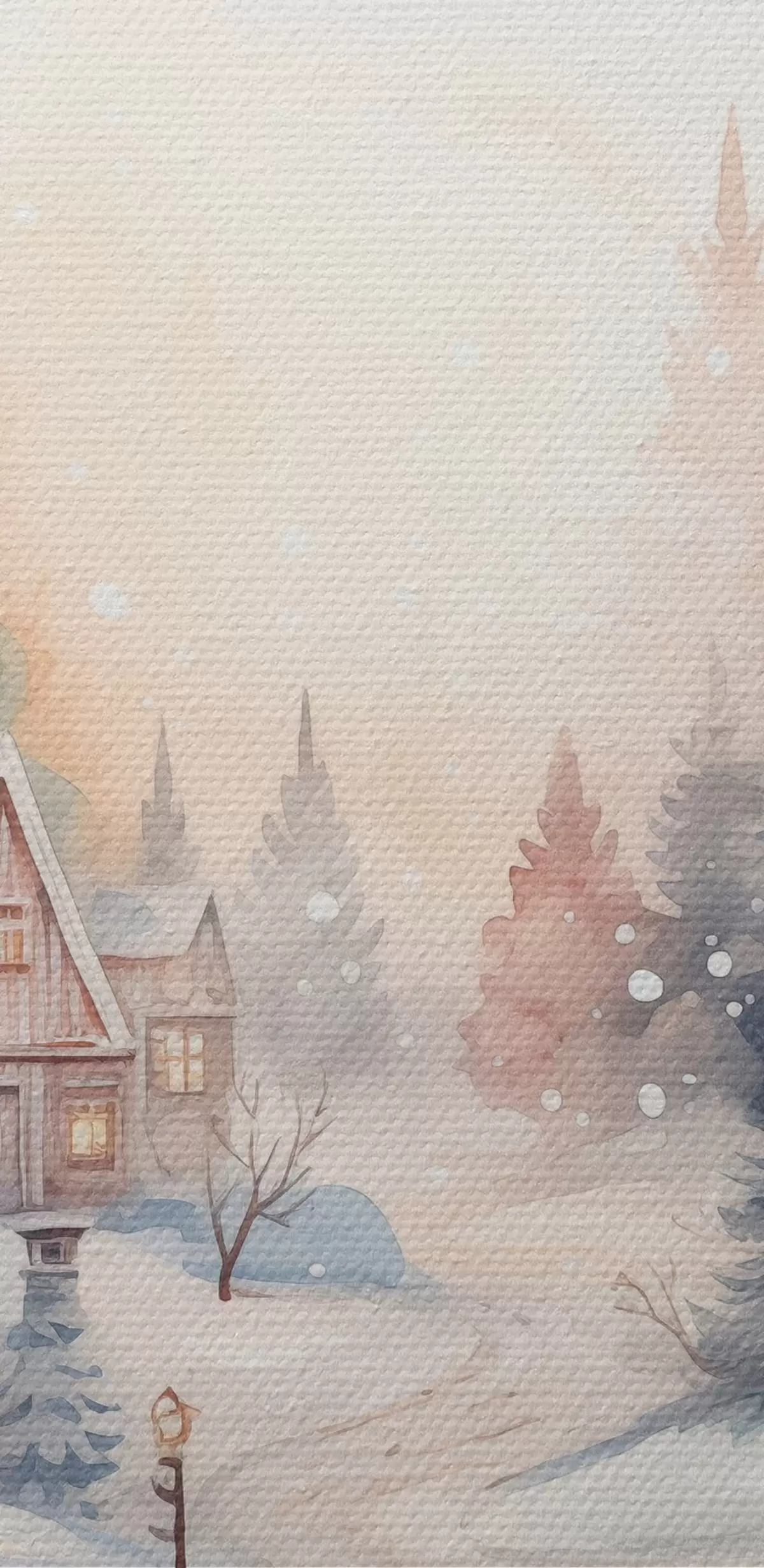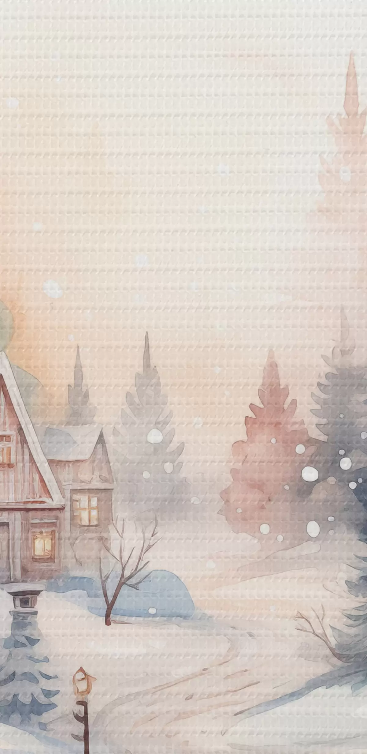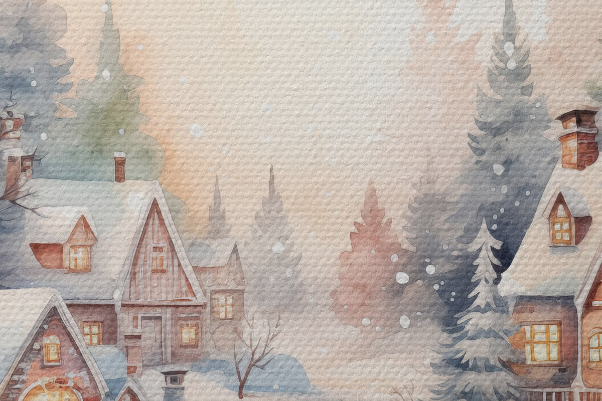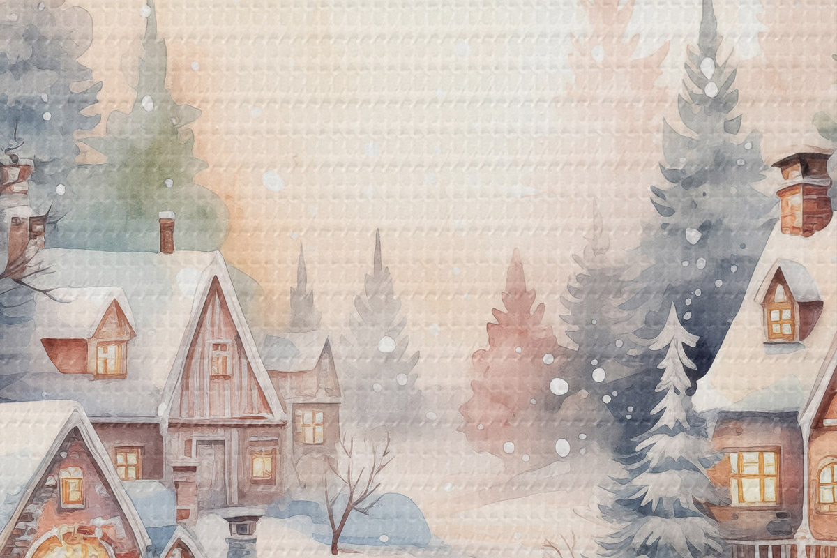 Кругла картина Зимовий пейзаж, сосновий ліс, красиві будинки, акварель, сусети r41390