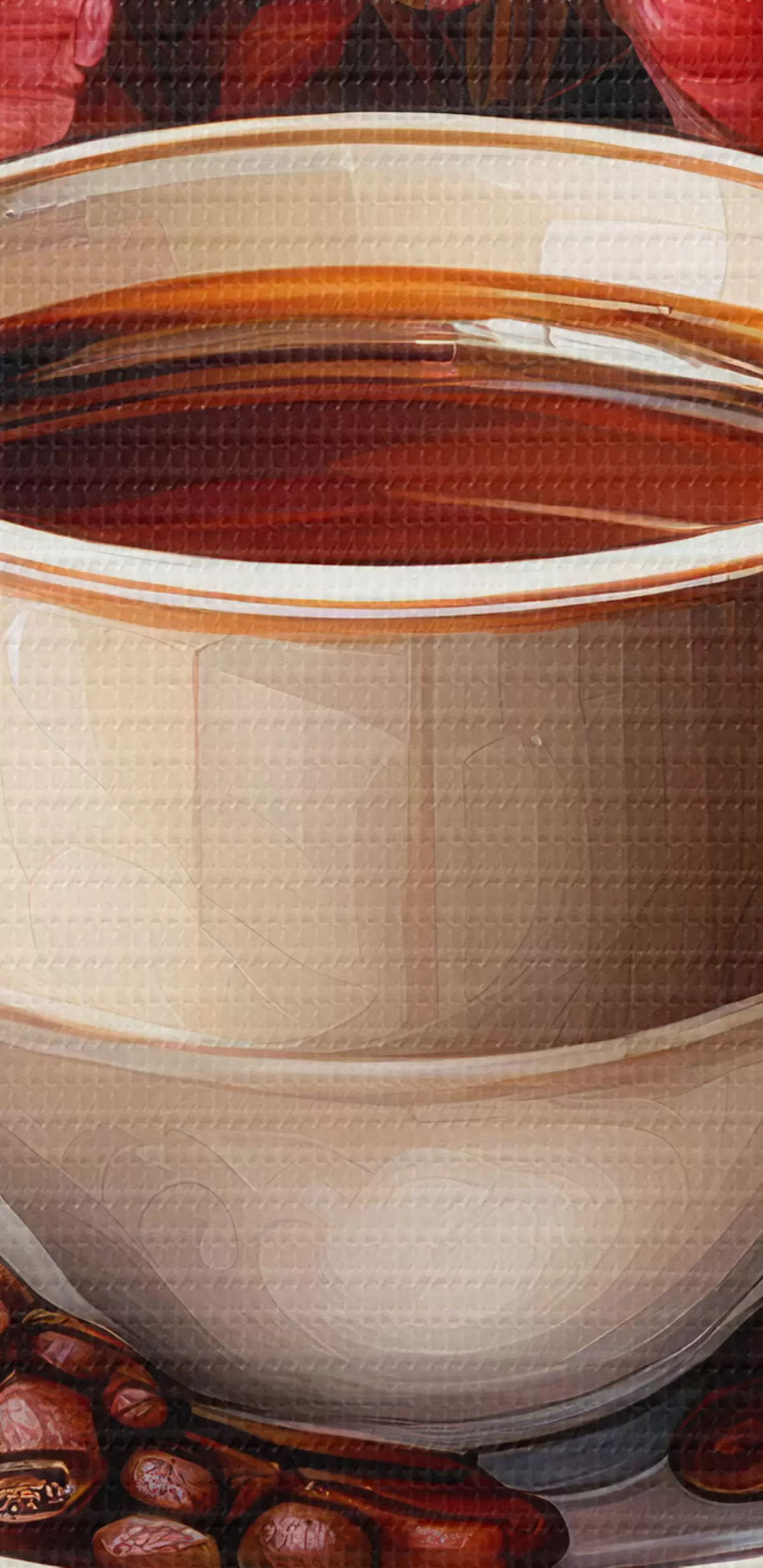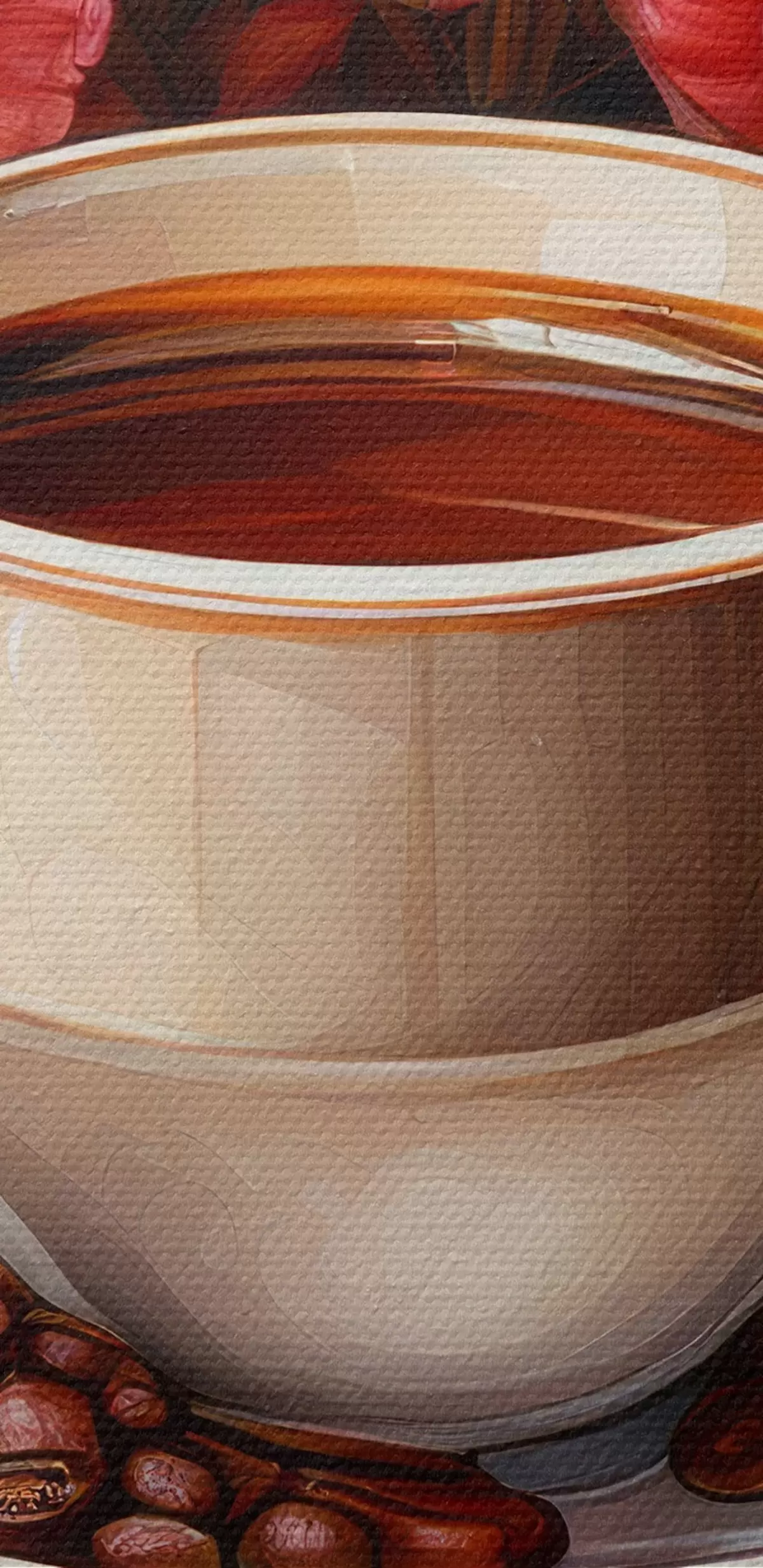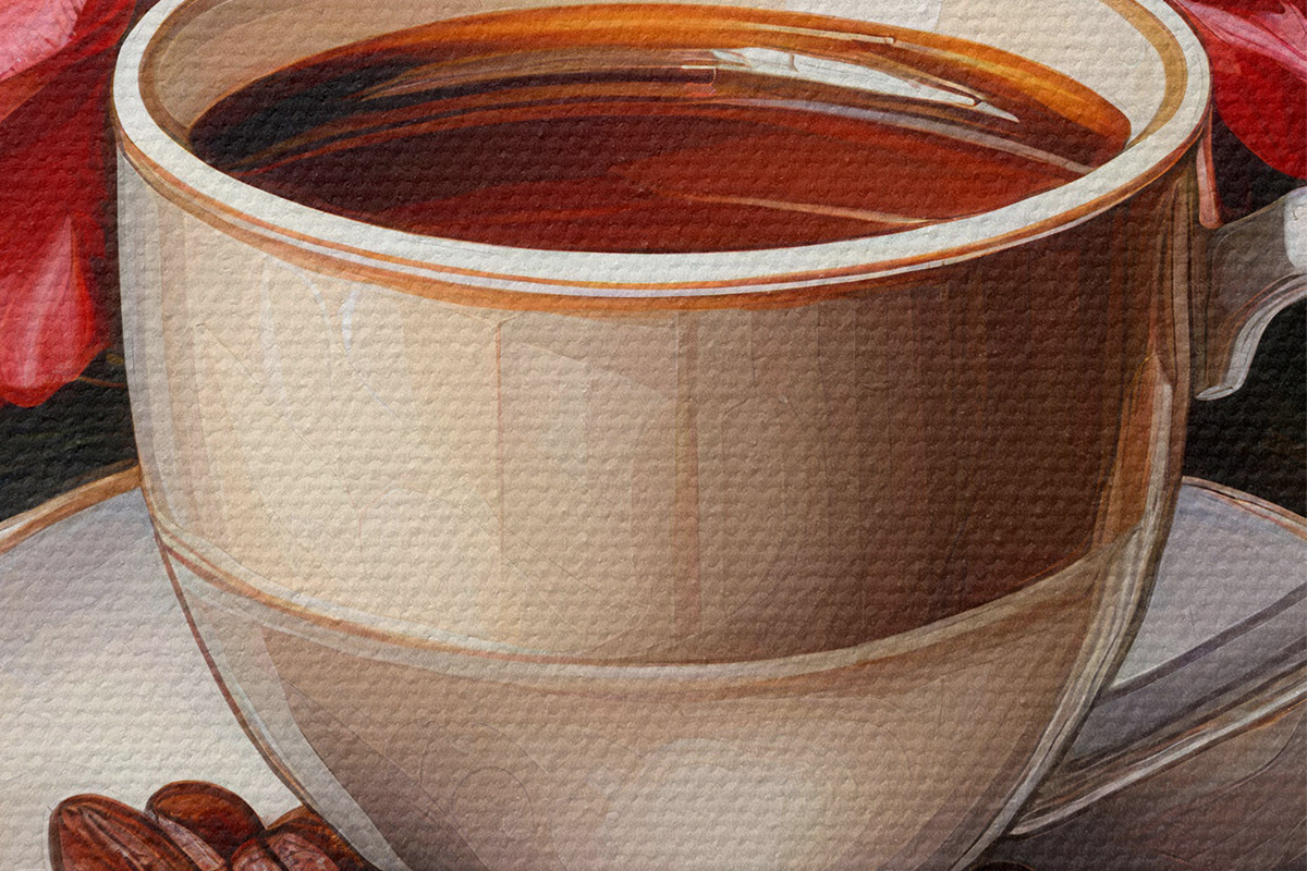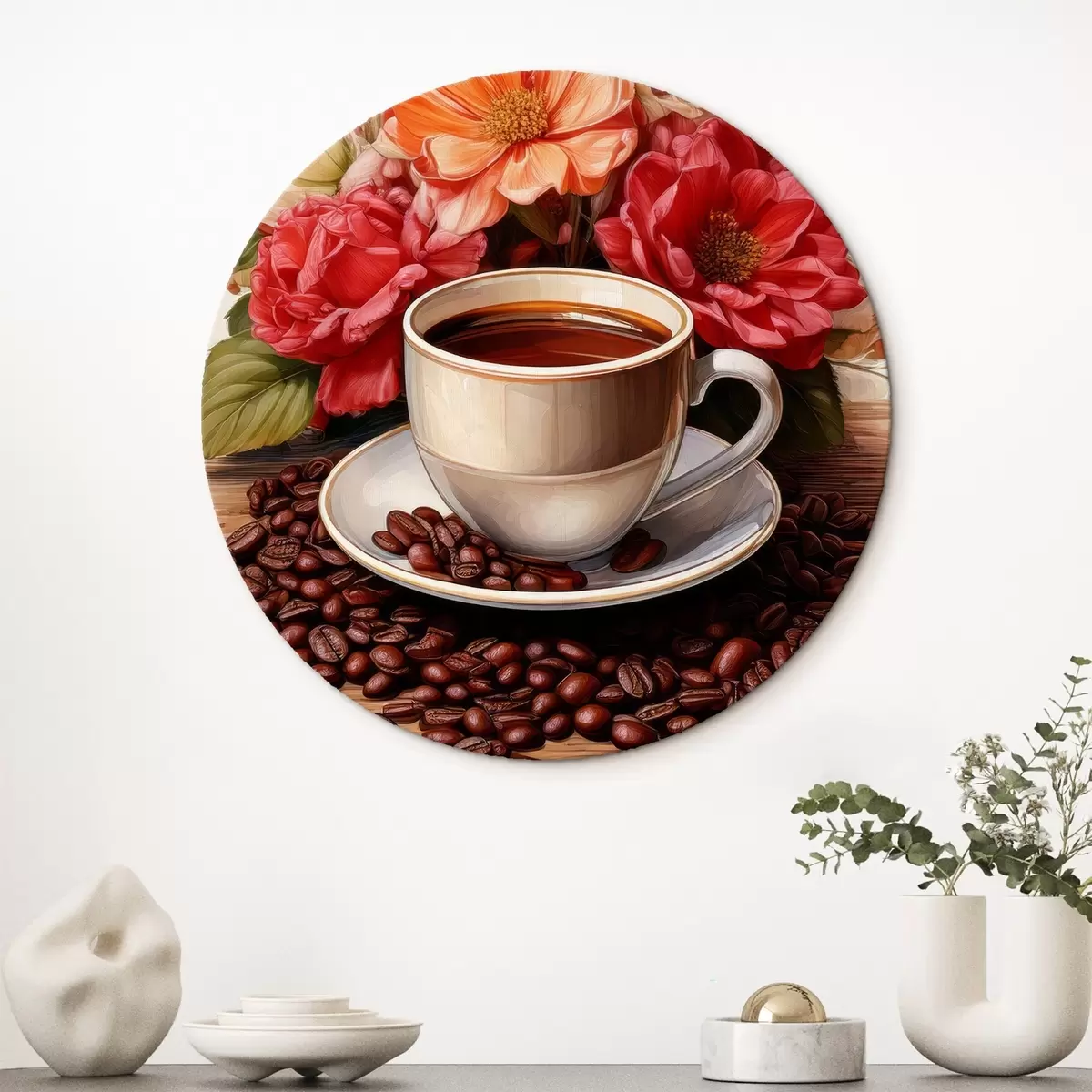 Кругла картина філіжанка кави та букет квітів Nr r41411