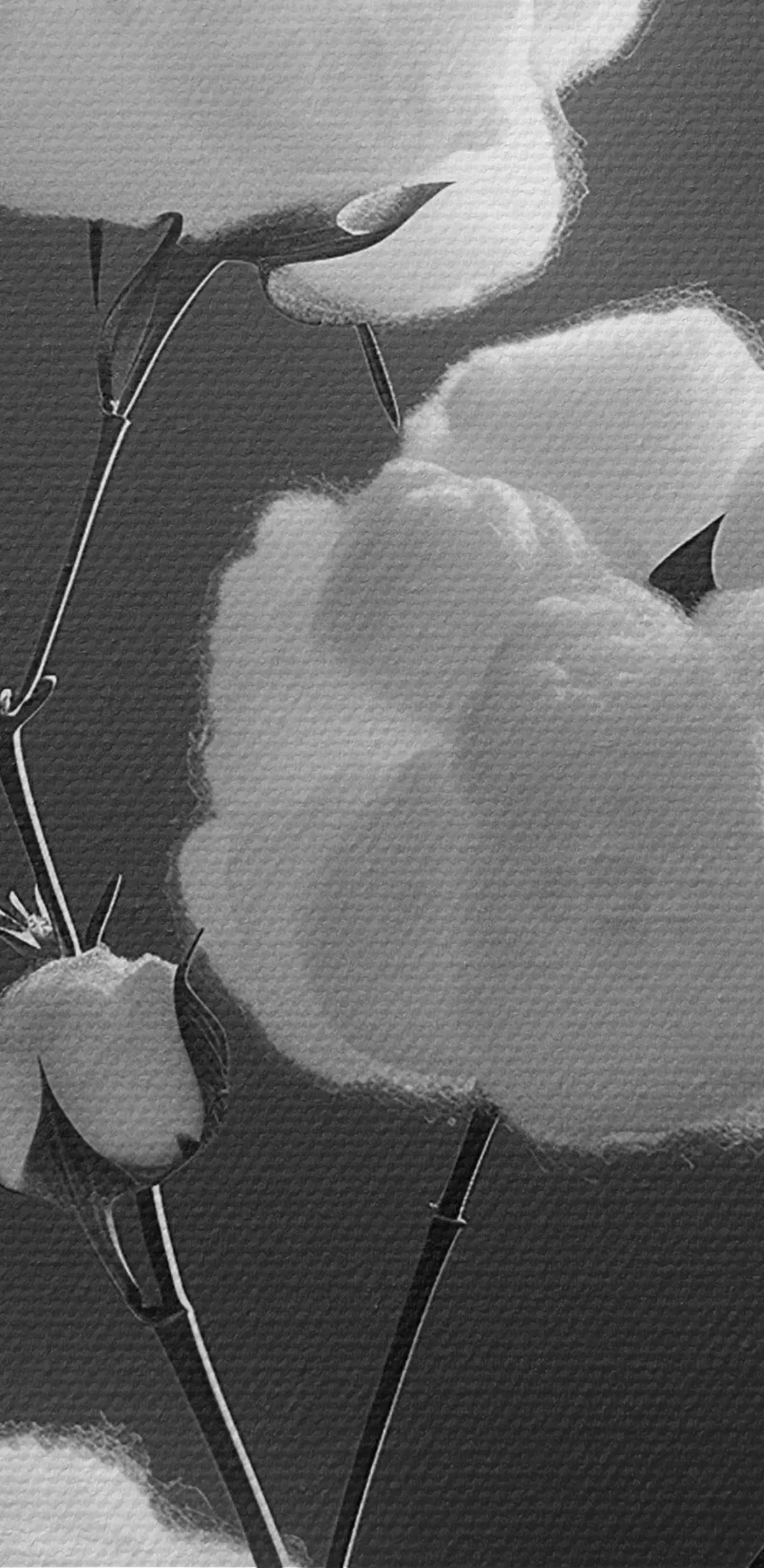 Кругла картина Бавовняні гілки, чорно-біла версія Nr r41429