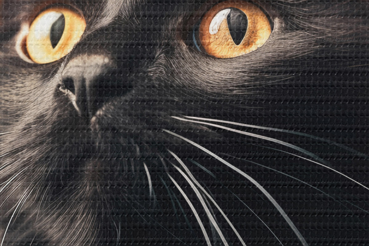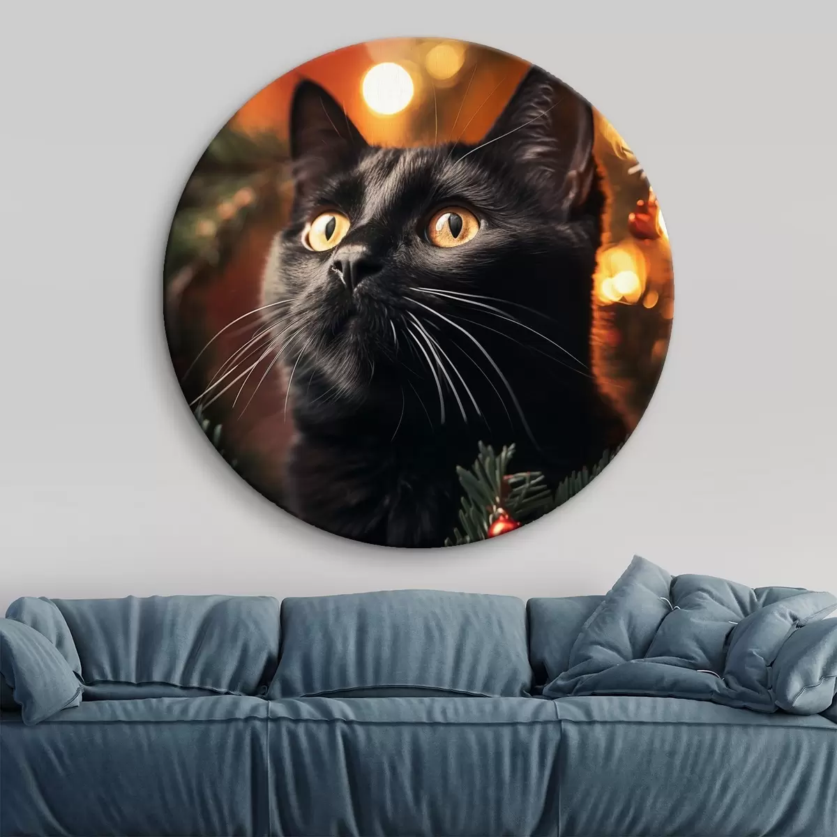 Кругла картина Чорний кіт на тлі новорічних вогнів Nr r41441