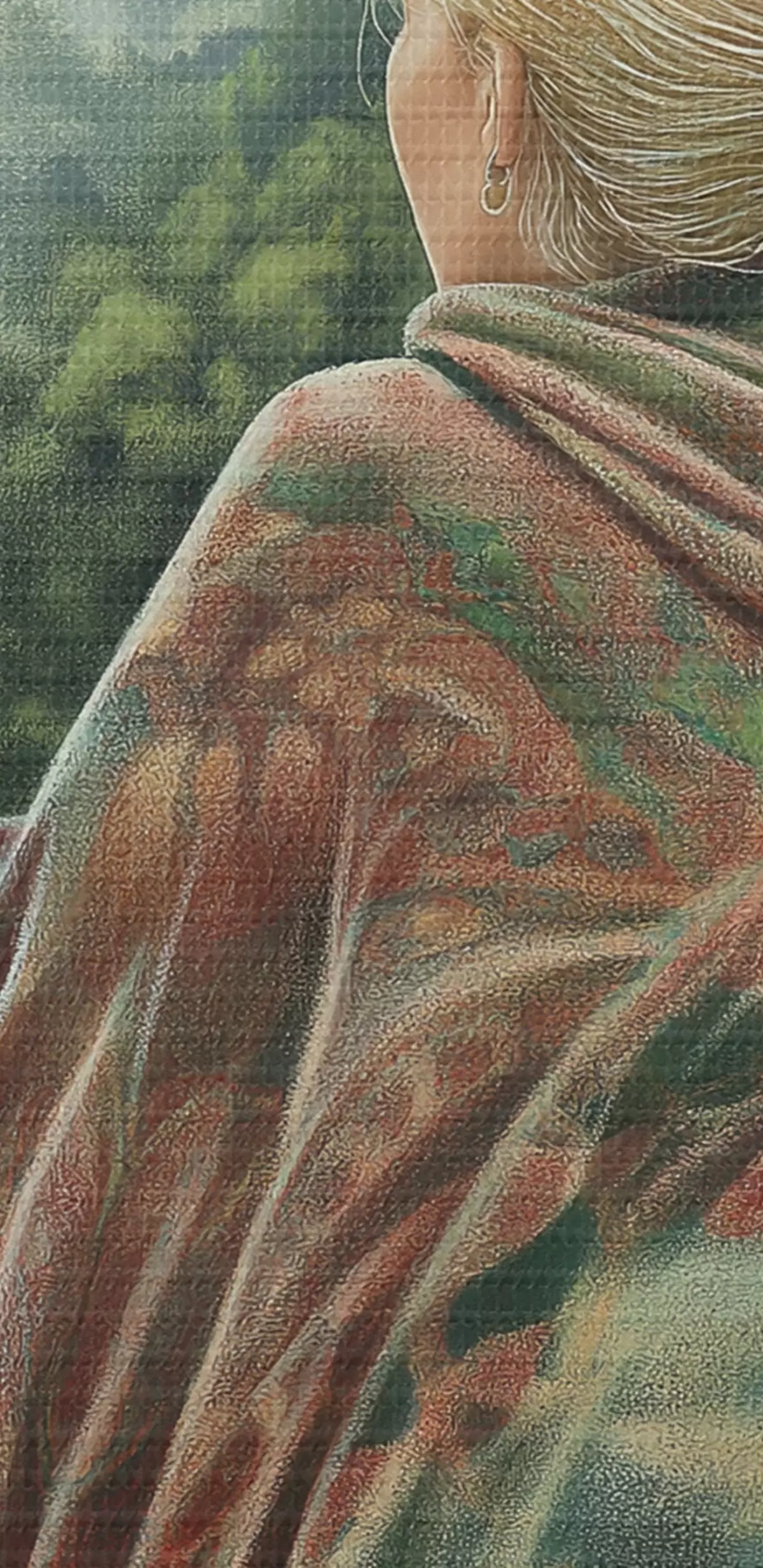 Тонке переплетення ниток на цьому полотні нагадує поверхню полотен професійних художників.