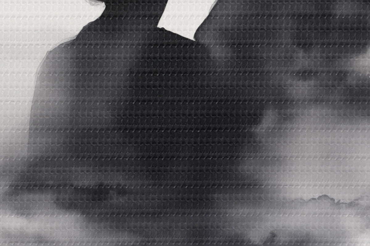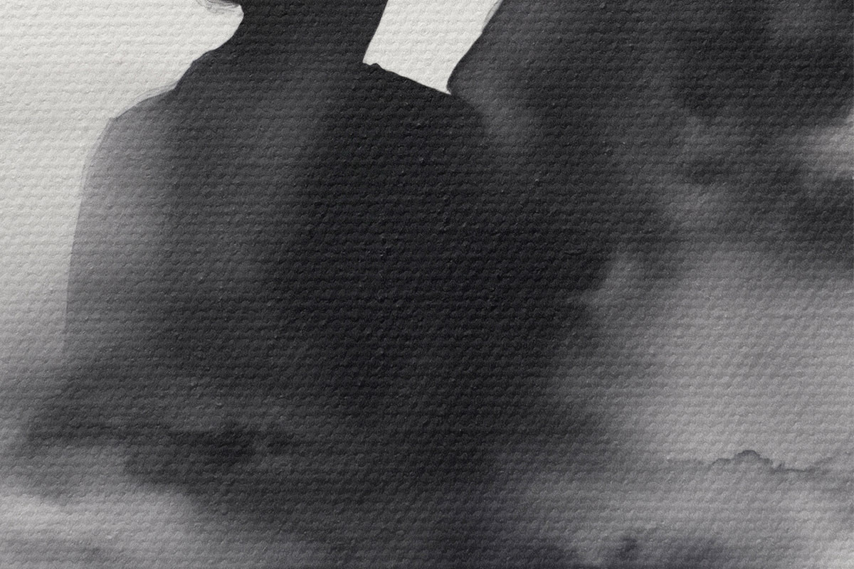 Кругла картина Силует пари в техніці чорно-білої акварелі r41496