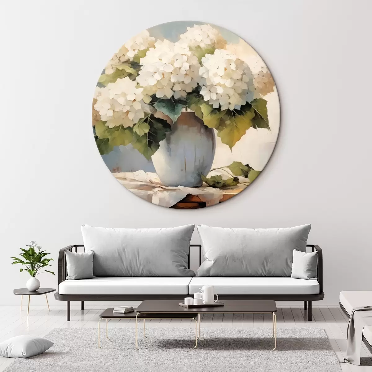 Кругла картина Ваза з квітами на столі Nr r41761