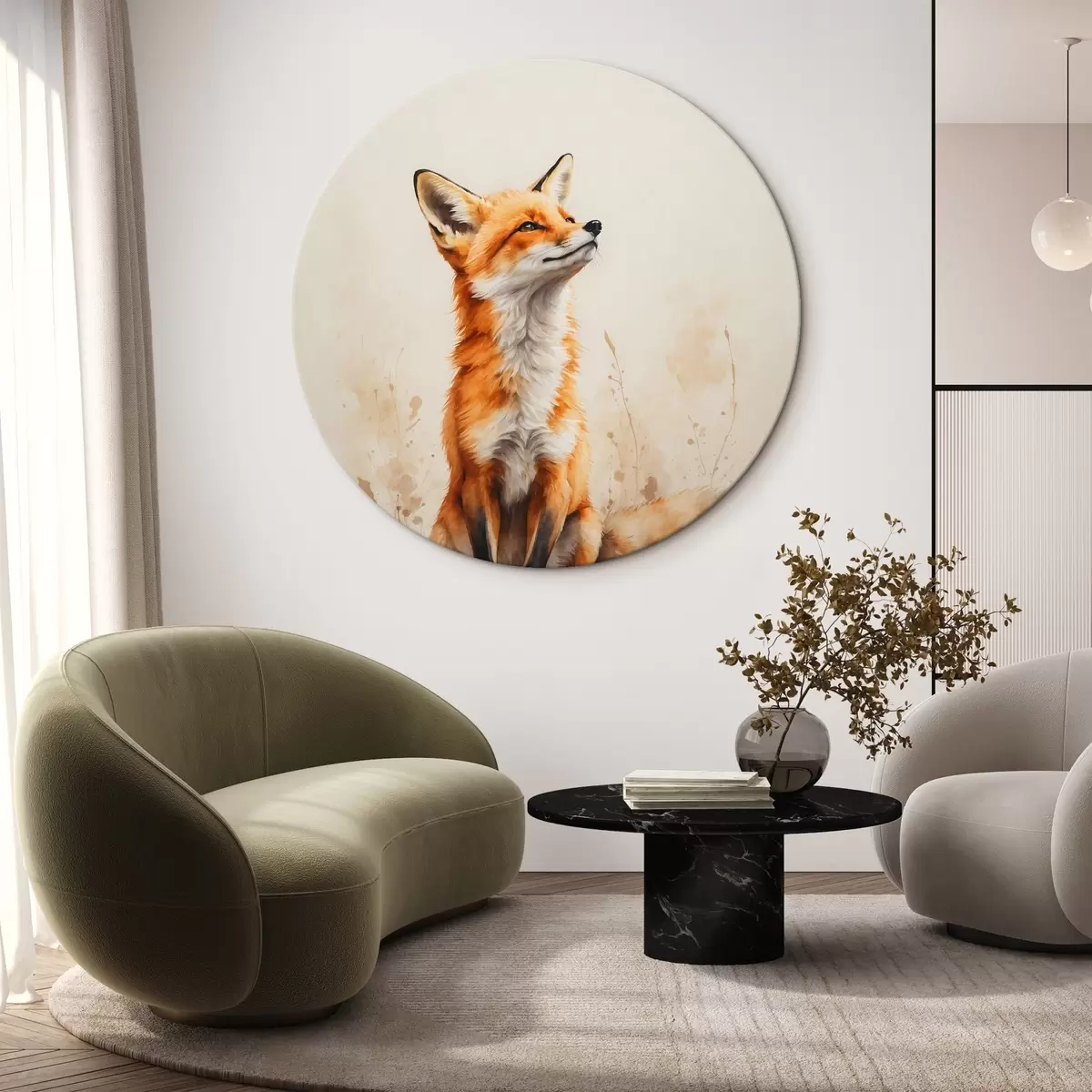 Кругла картина Лисиця на бежевому тлі Nr r41778
