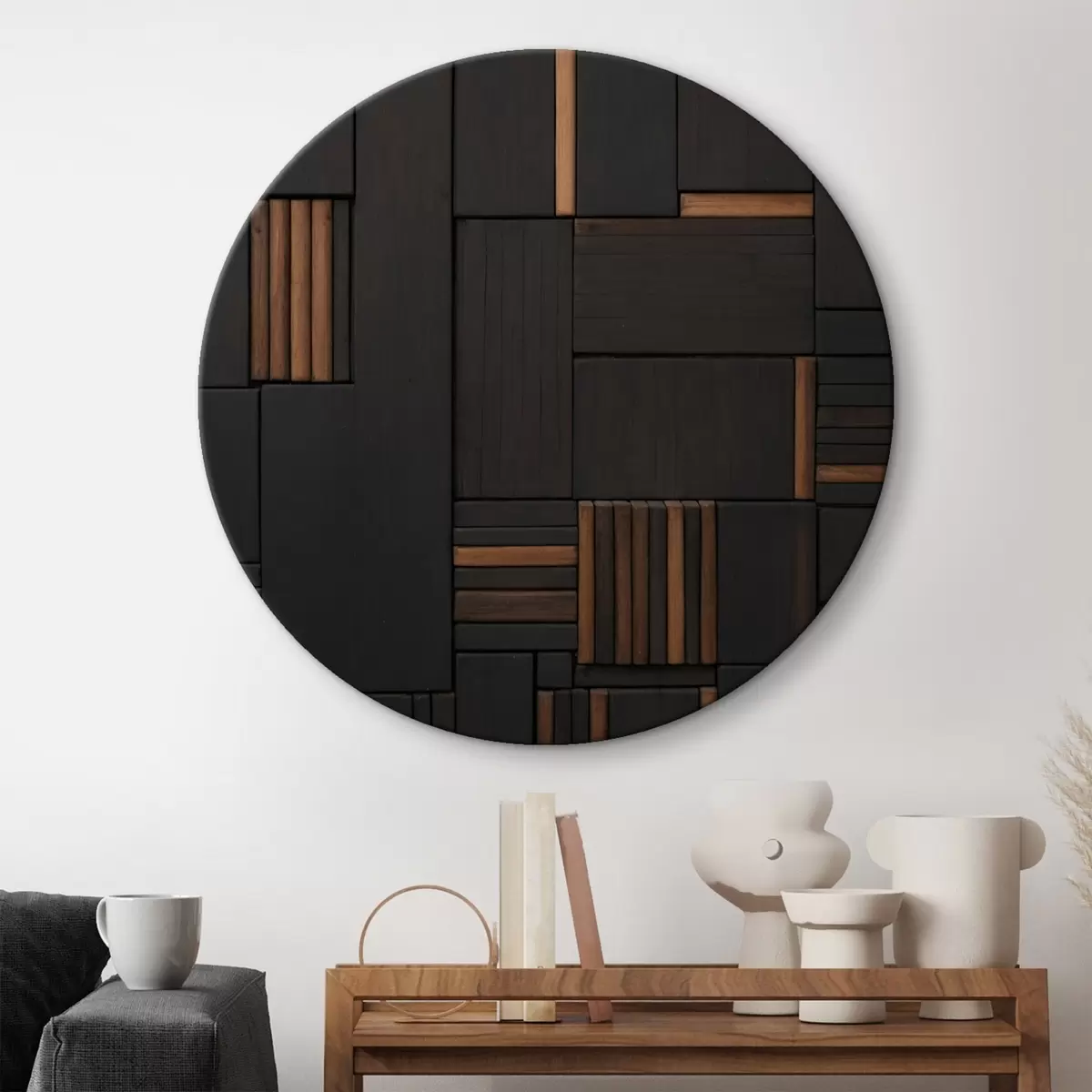 Кругла картина Стіна із зображенням дерев'яних плиток Nr r41782