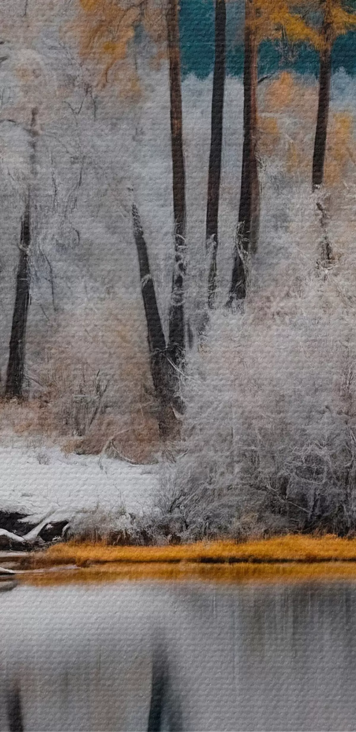 Кругла картина Зимовий ліс та озеро Nr r41785