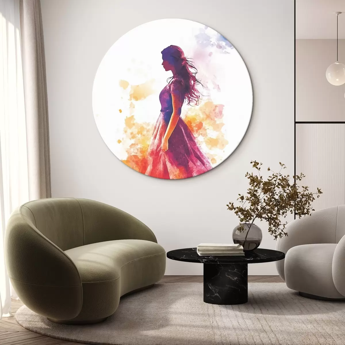 Кругла картина Портрет дівчини в стилі акварелі Nr r42080