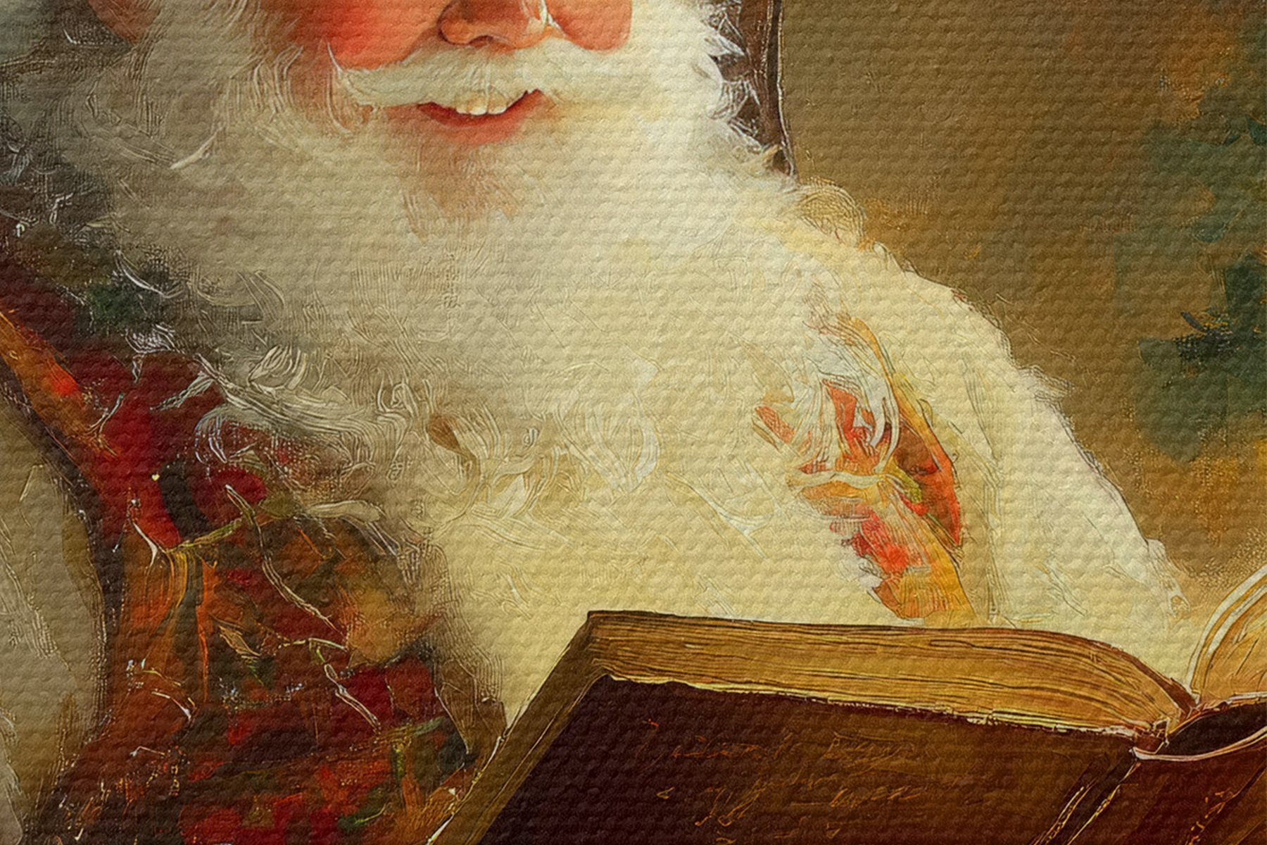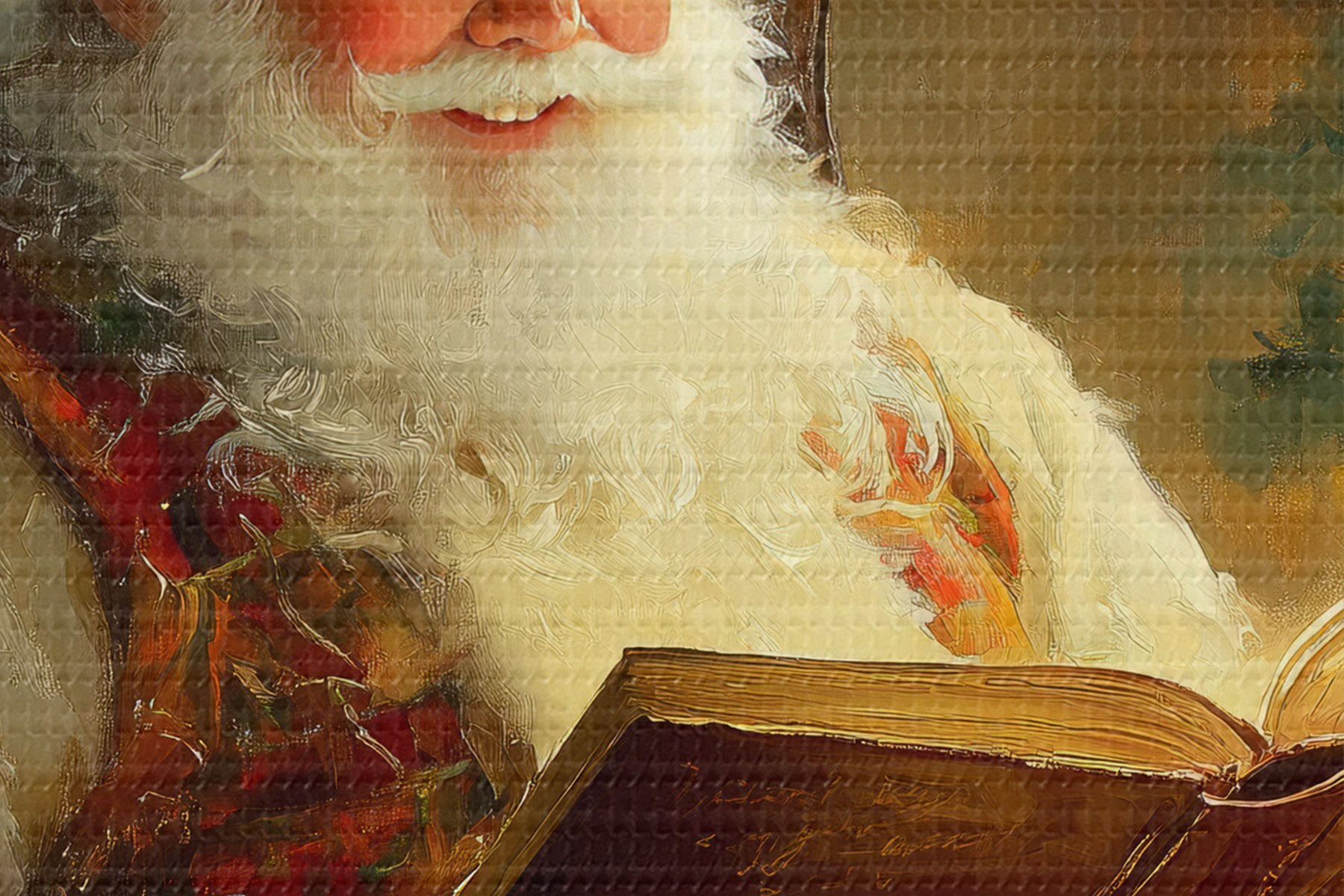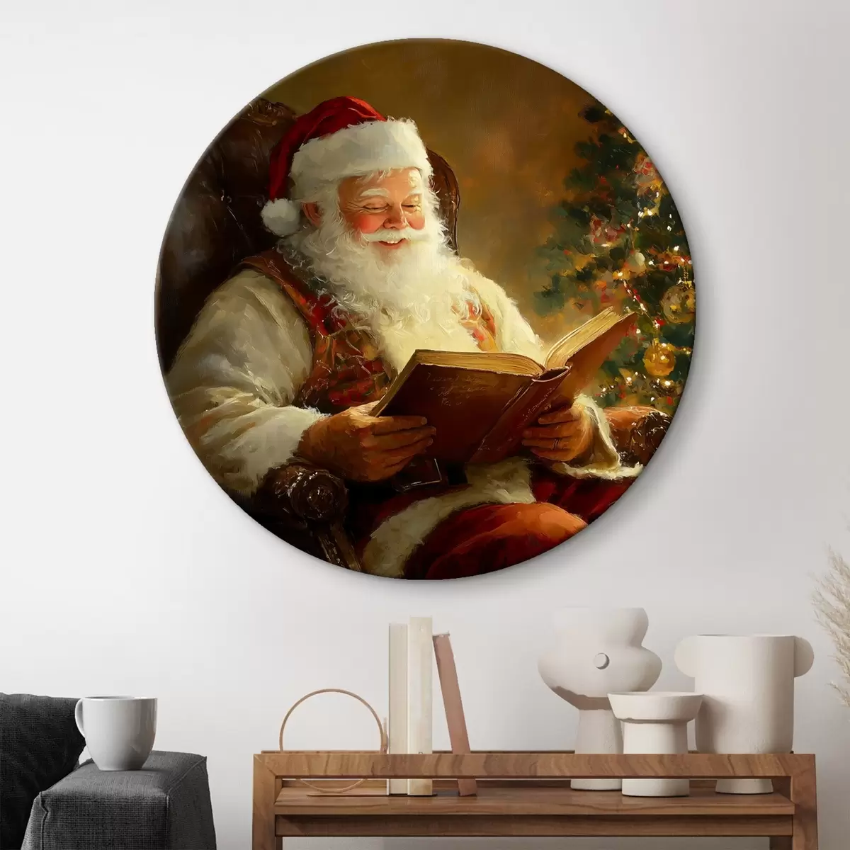 Кругла картина Дід Мороз читає книгу біля ялинки Nr r42100