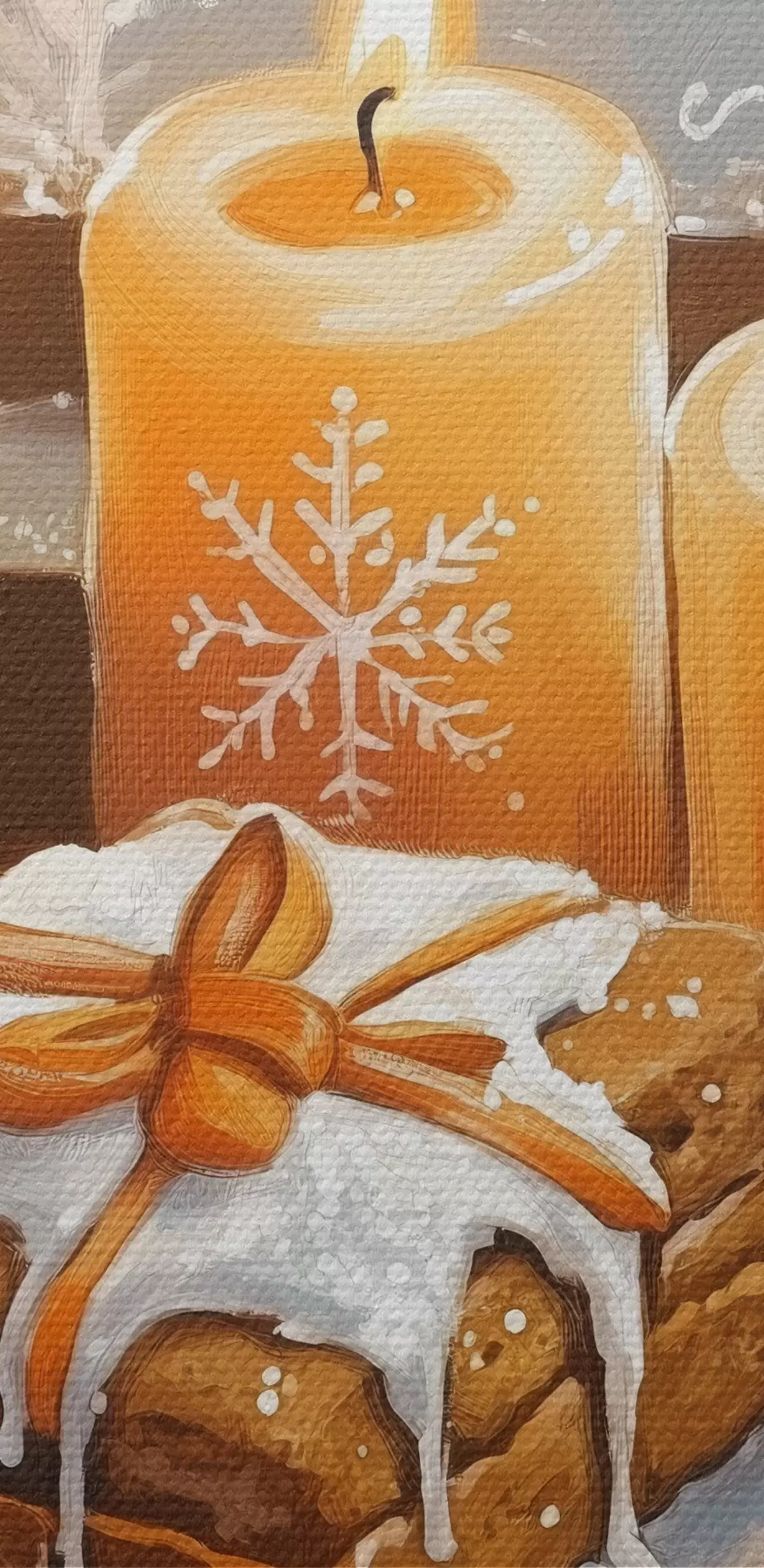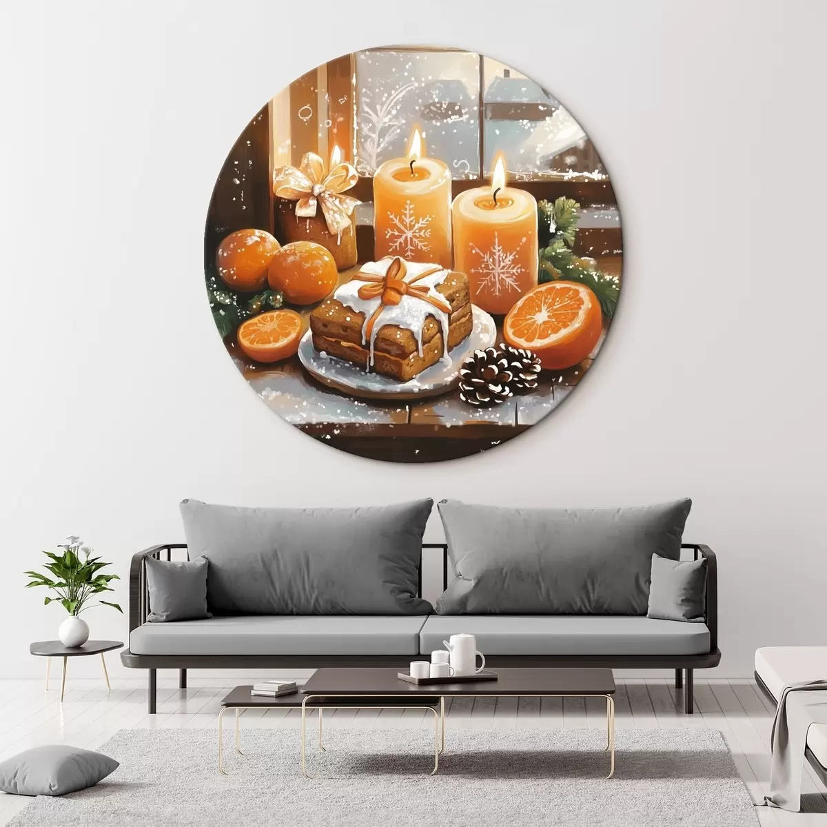Кругла картина Різдвяний торт, мандарини, свічки Nr r42101
