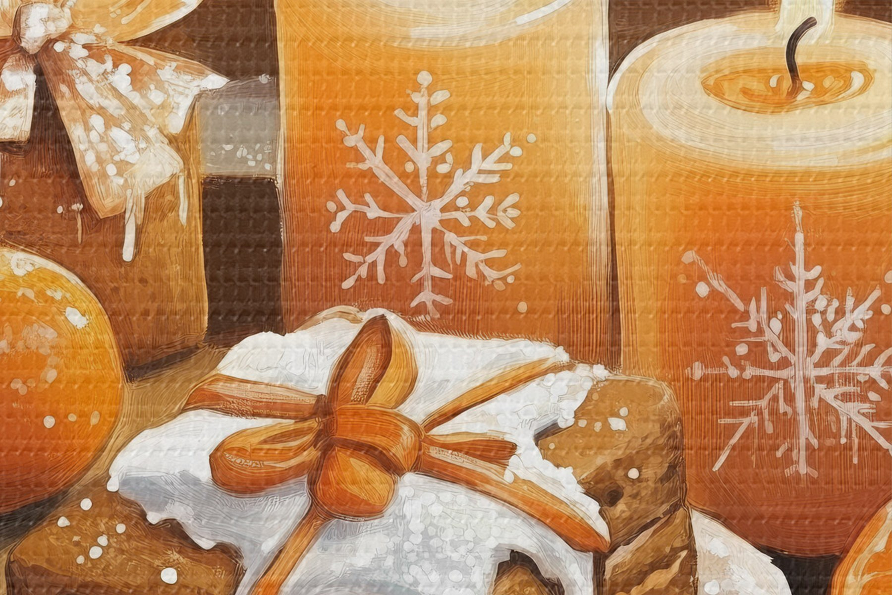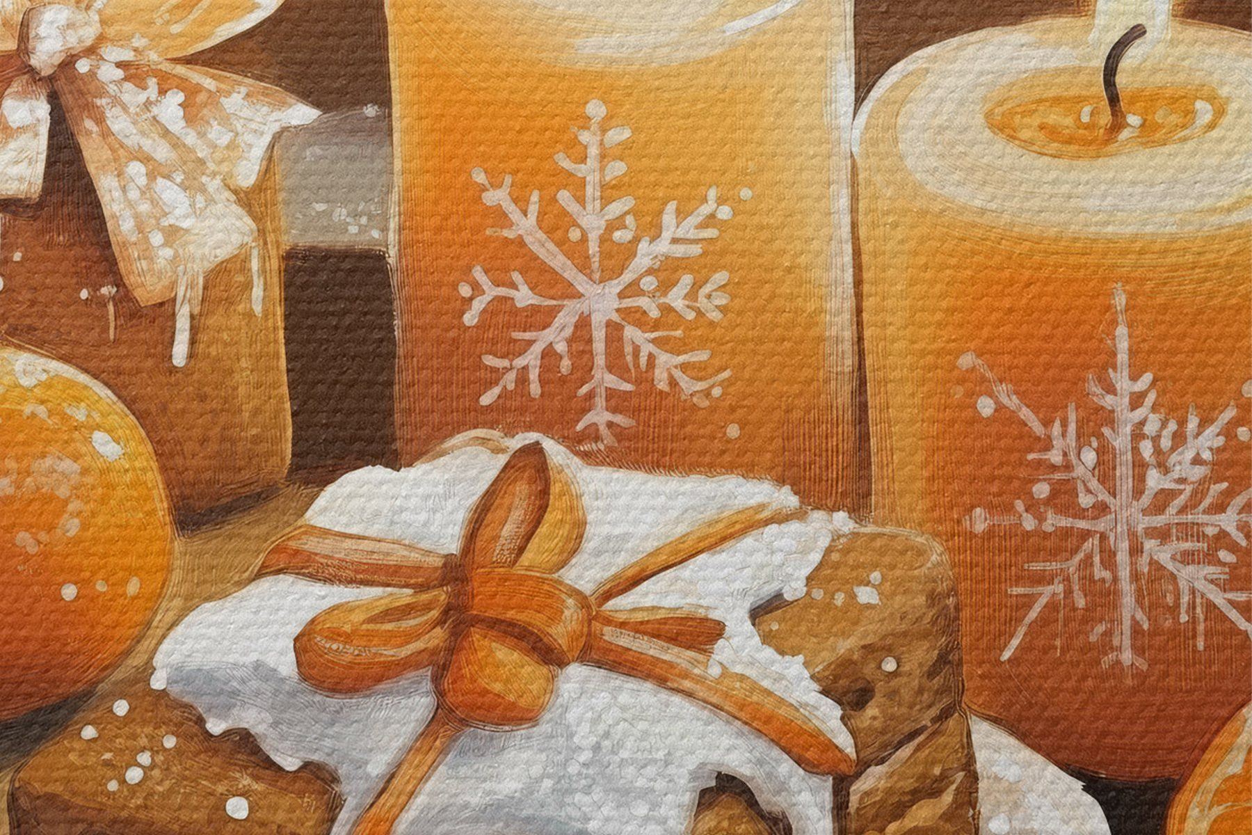 Кругла картина Різдвяний торт, мандарини, свічки r42101