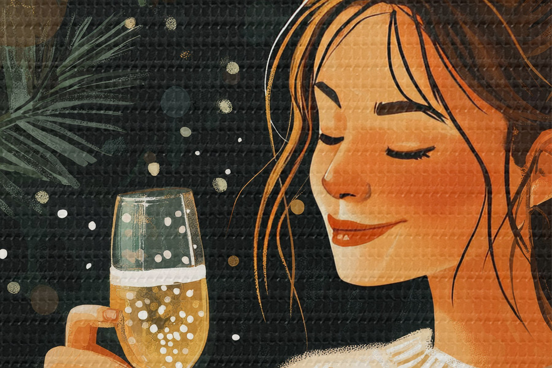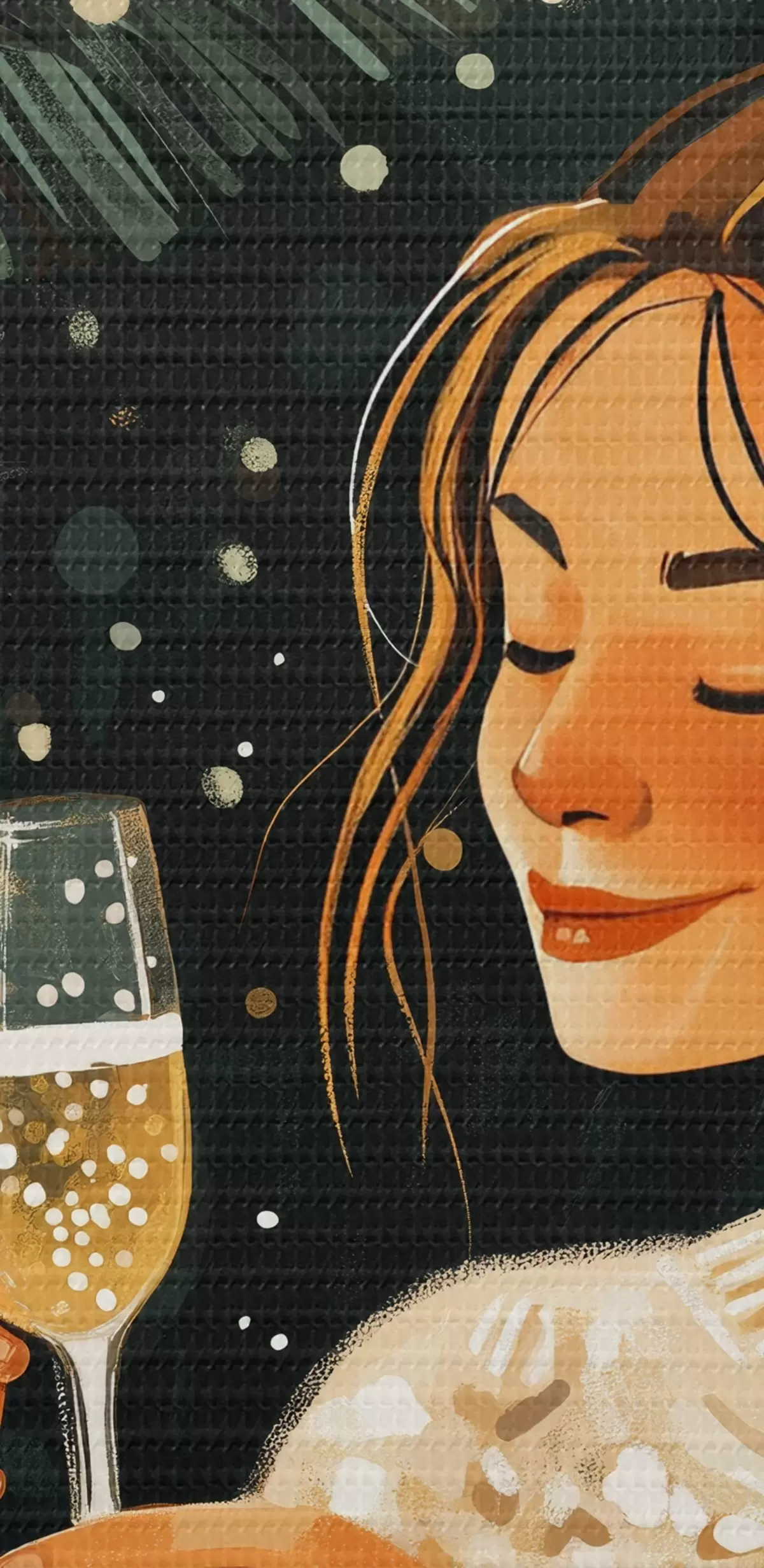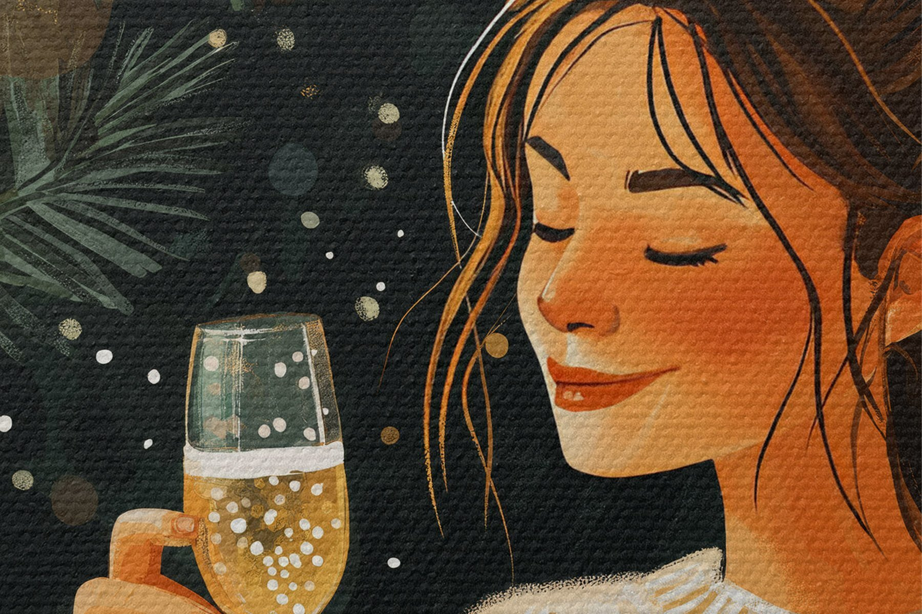 Кругла картина Дівчина з келихом шампанського в новорічну ніч Nr r42102
