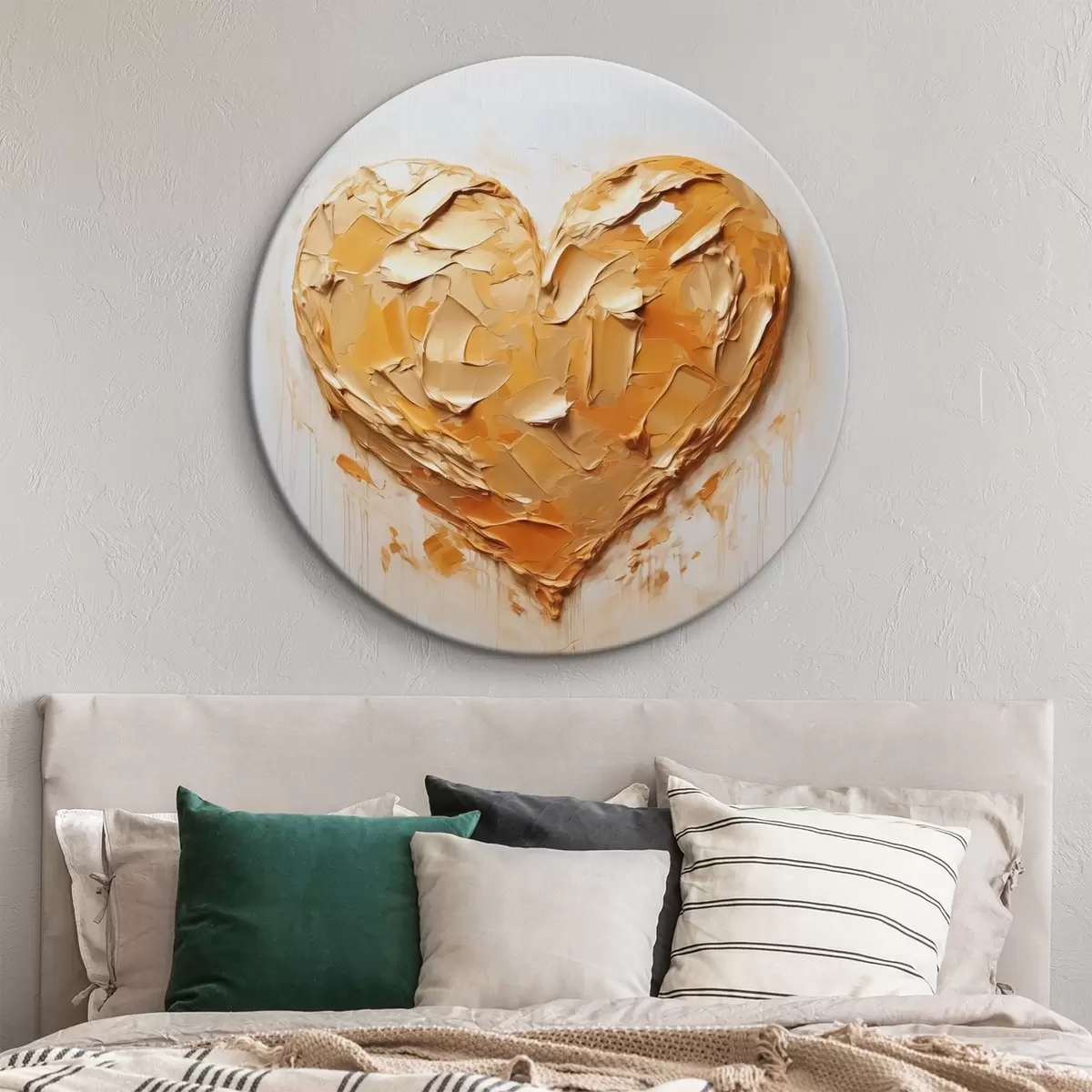 Кругла картина Імітація серця мазками фарби, жовті та помаранчеві відтінки Nr r42124