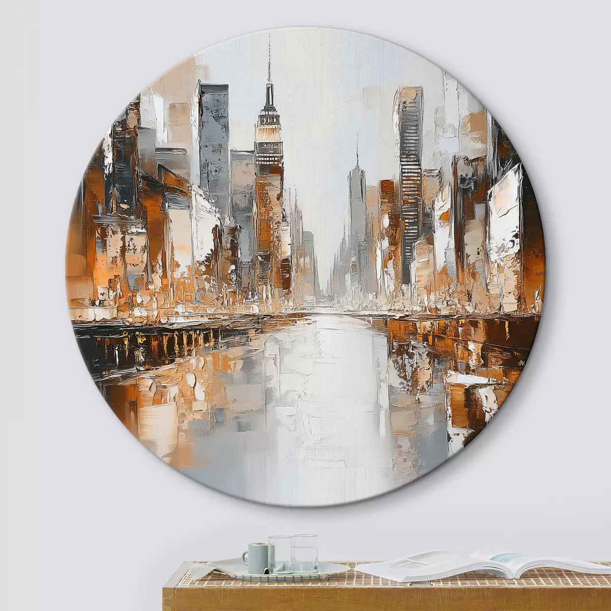 Кругла картина Абстрактне місто з імітацією мазків пензля Nr r42133