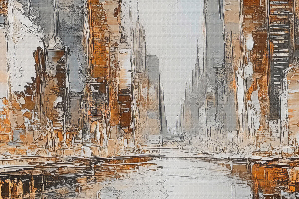 Кругла картина Абстрактне місто з імітацією мазків пензля Nr r42133