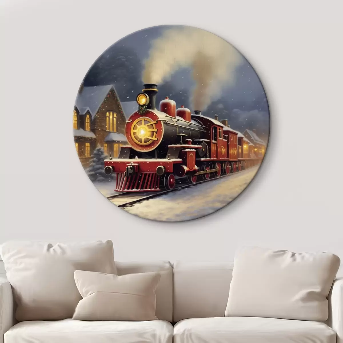 Кругла картина Різдвяний потяг у зимовій казці Nr r42168
