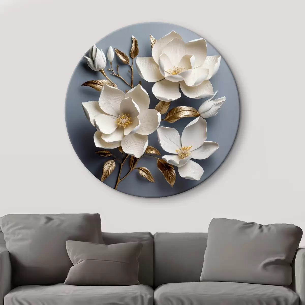 Кругла картина Великі квіти на світло-сірому тлі Nr r42174