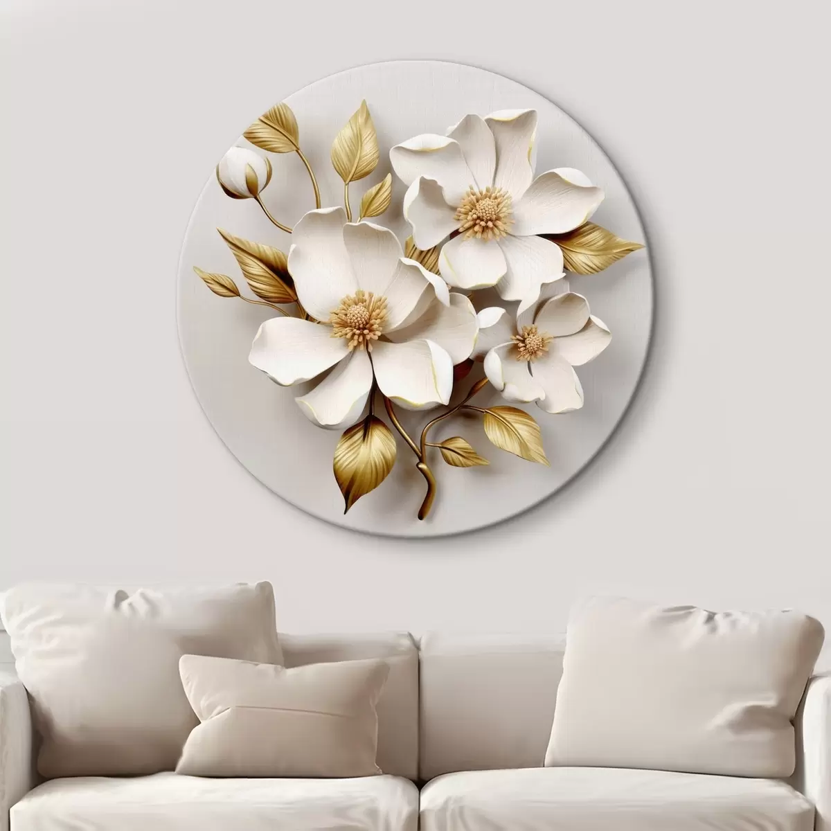 Кругла картина Великі квіти на світлому тлі Nr r42175