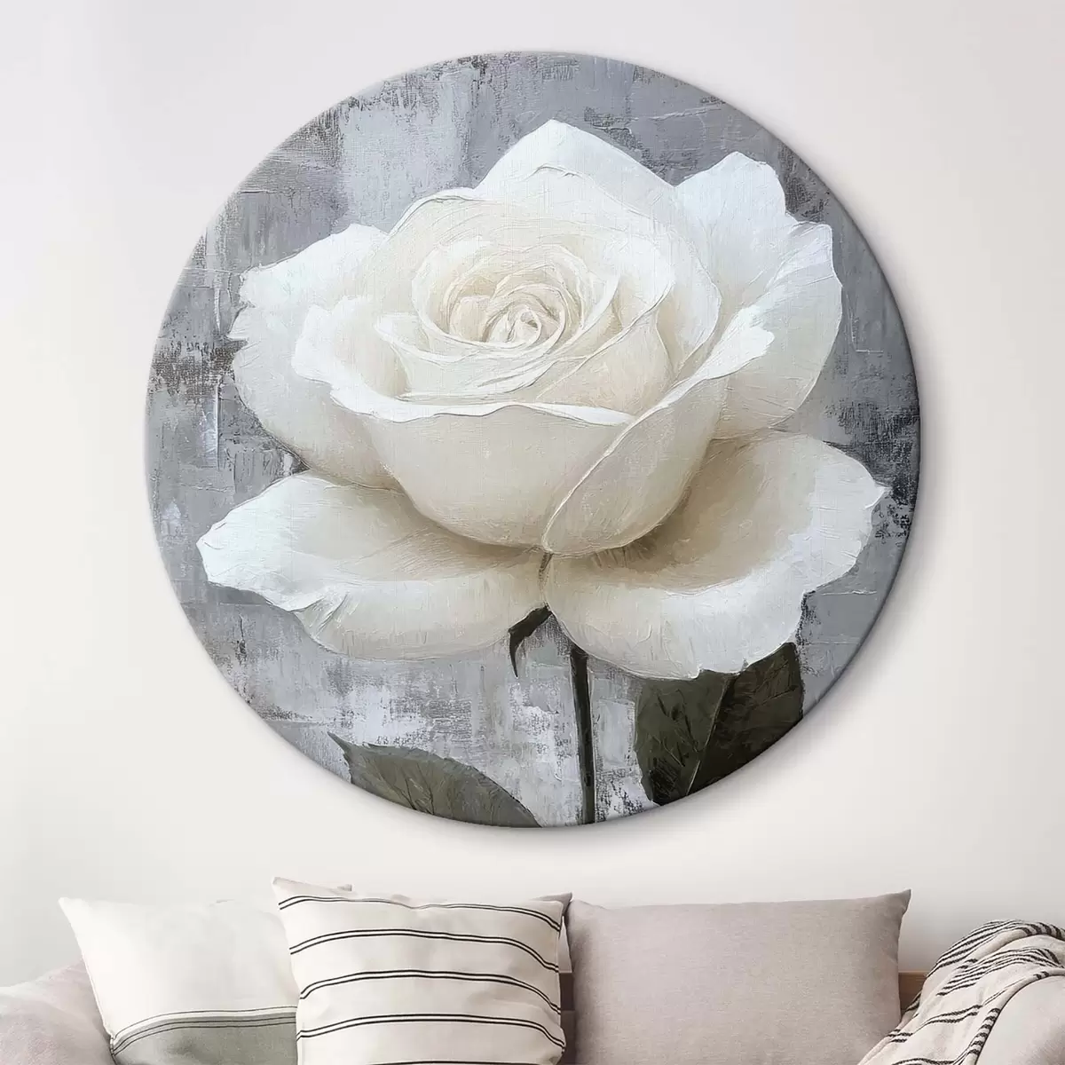 Кругла картина Біла троянда, намальована від руки на бетонному тлі r42185