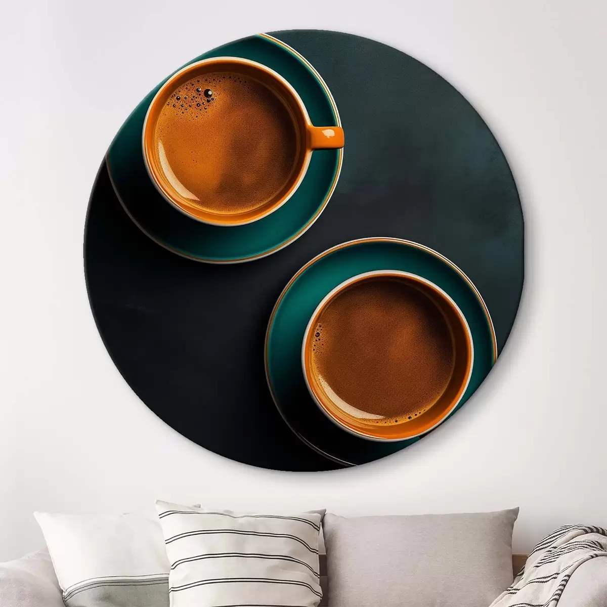 Кругла картина Дві чашки кави на темному тлі Nr r42190