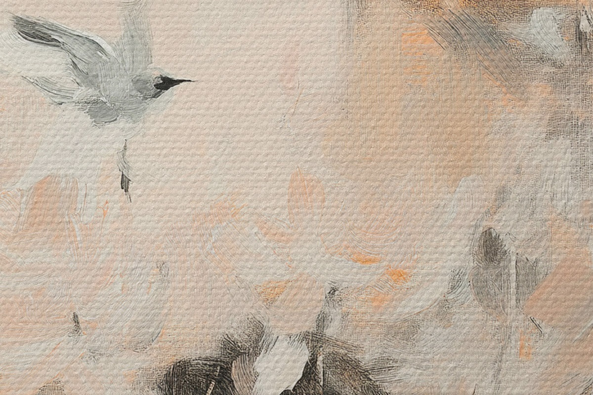 Кругла картина Абстракція з птахами, що летять, акриловий стиль, рожевий та бежевий кольори r42205