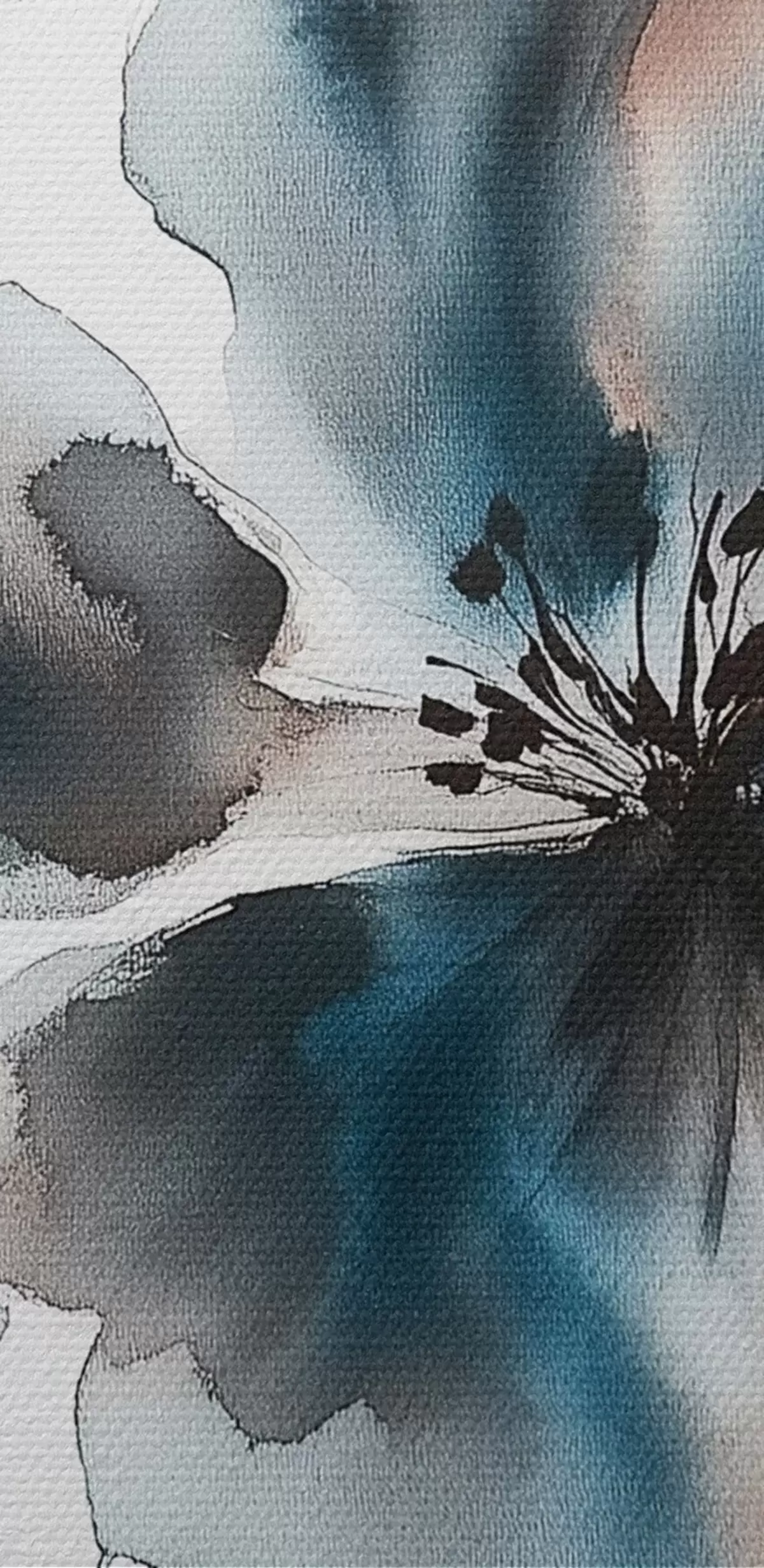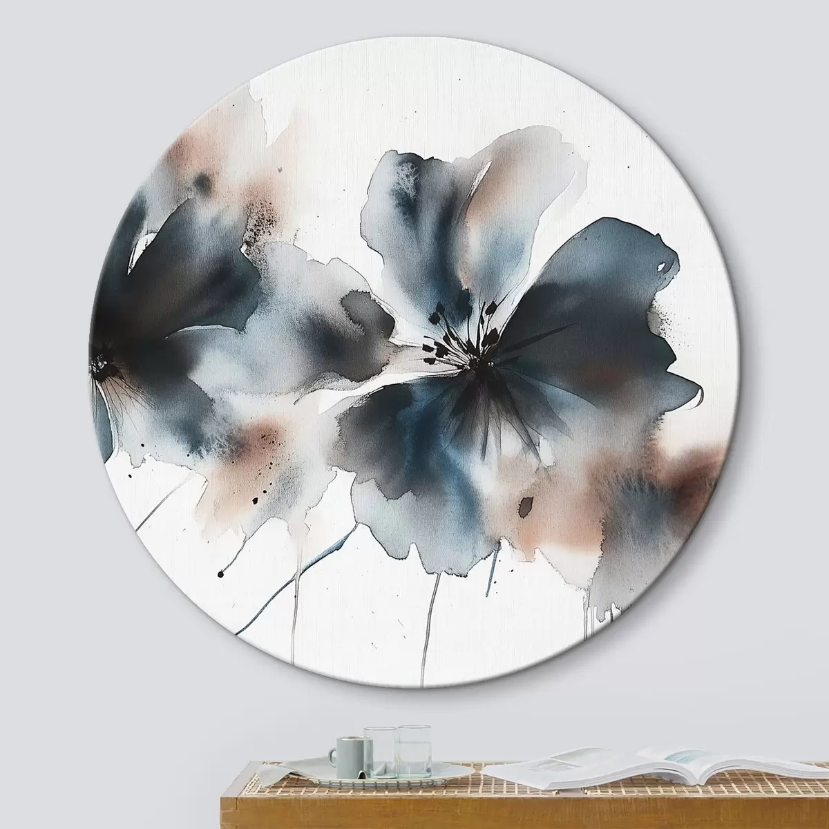 Кругла картина Квіти в стилі акварелі, сині кольори Nr r42208