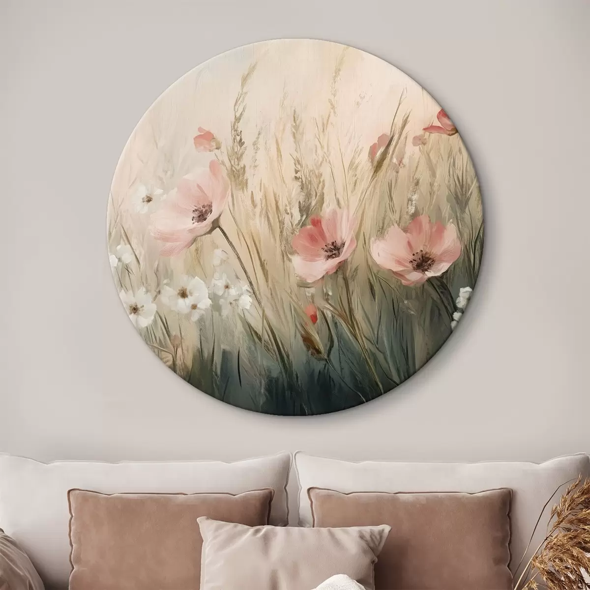 Кругла картина Квіти на лузі, сільський, акриловий стиль Nr r42209