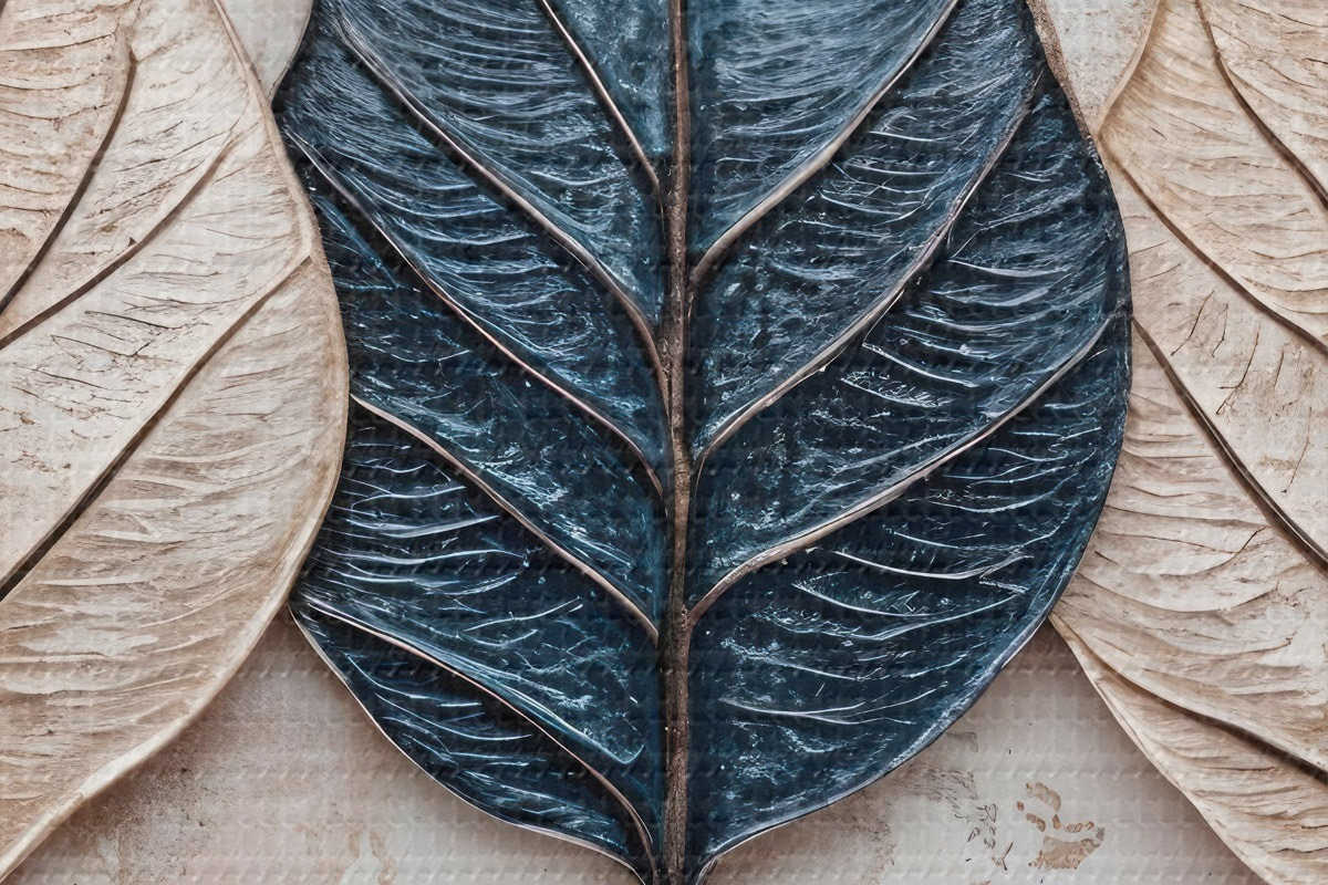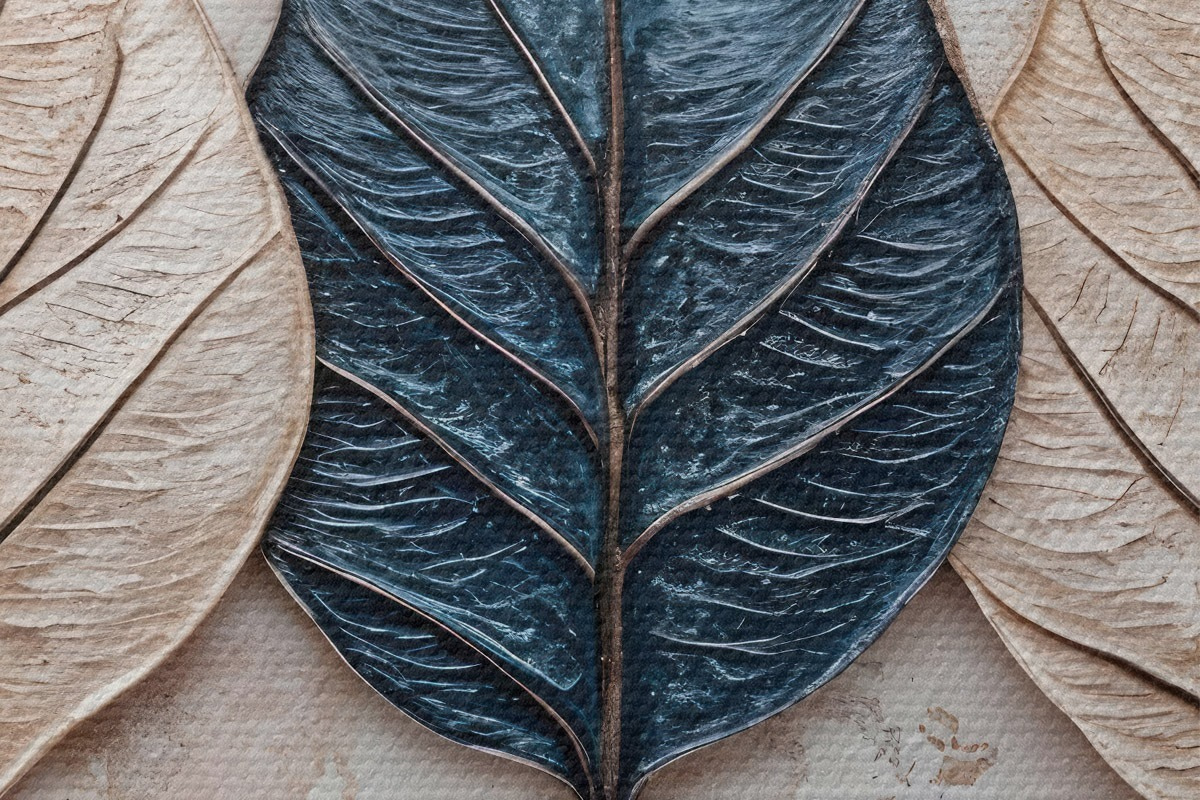 Кругла картина Осіннє абстрактне листя різних відтінків коричневого, бежевого та синього, розташоване в ряд на світлому тлі Nr r42217