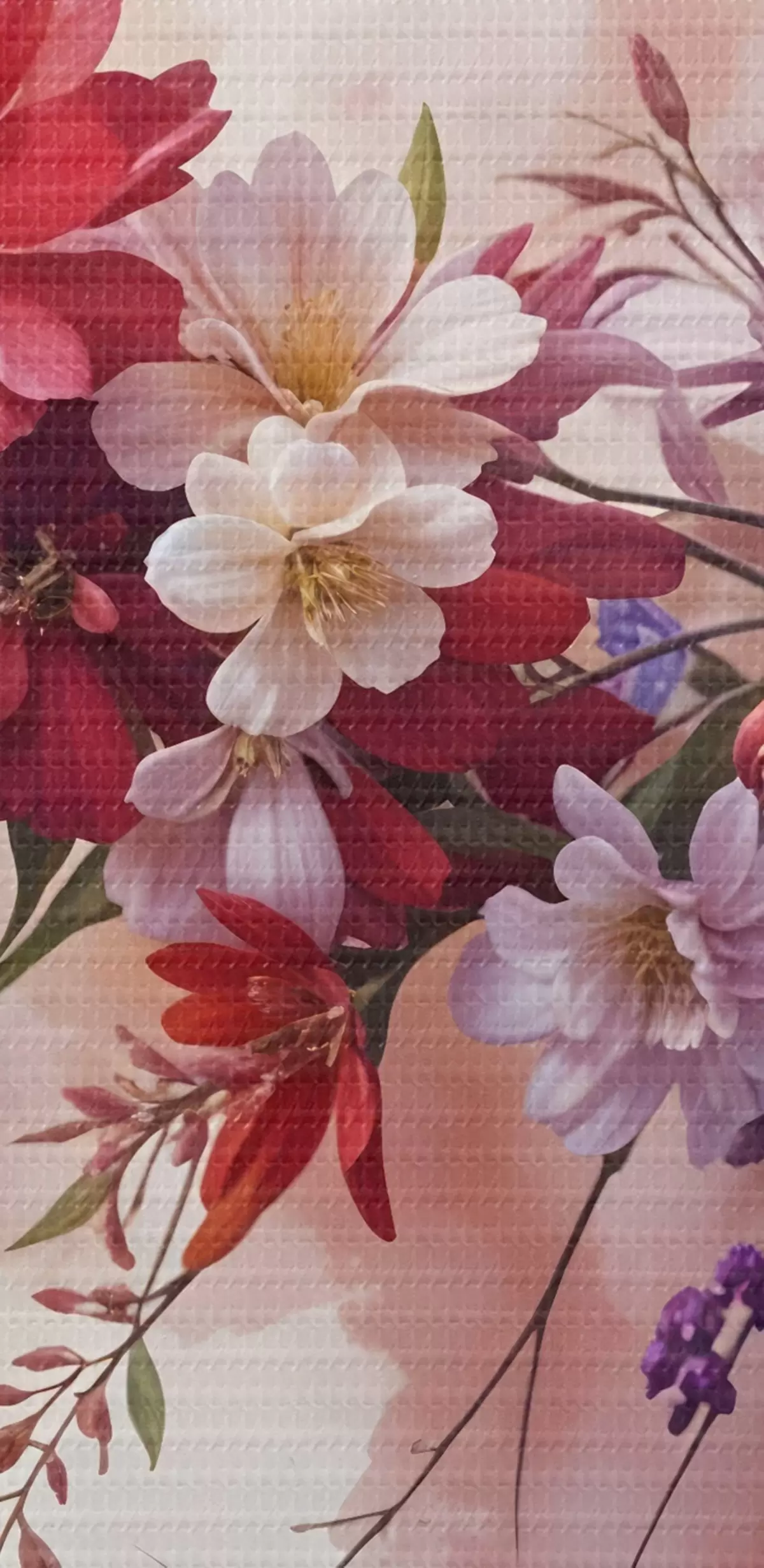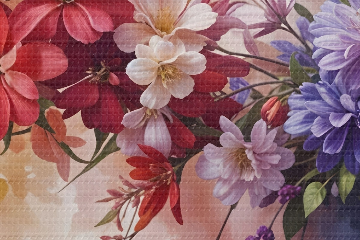 Кругла картина Барвисті квіти, включаючи червоні, рожеві та фіолетові жоржини, маргаритки та інші квіти на м'якому, розмитому тлі r42234