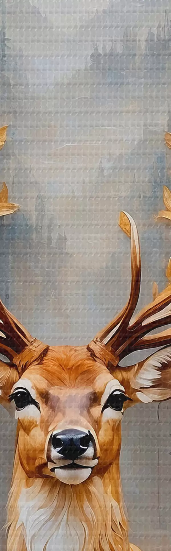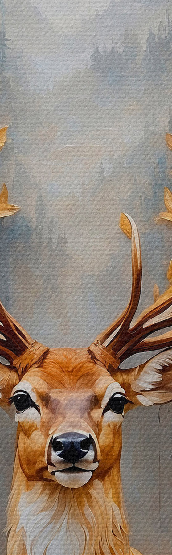 Кругла картина Олень з великими рогами на фоні лісу Nr r42252