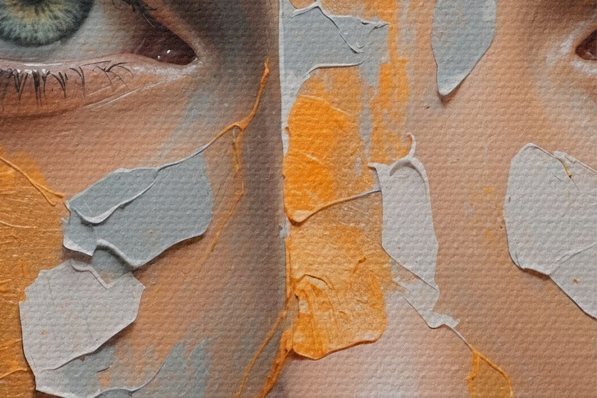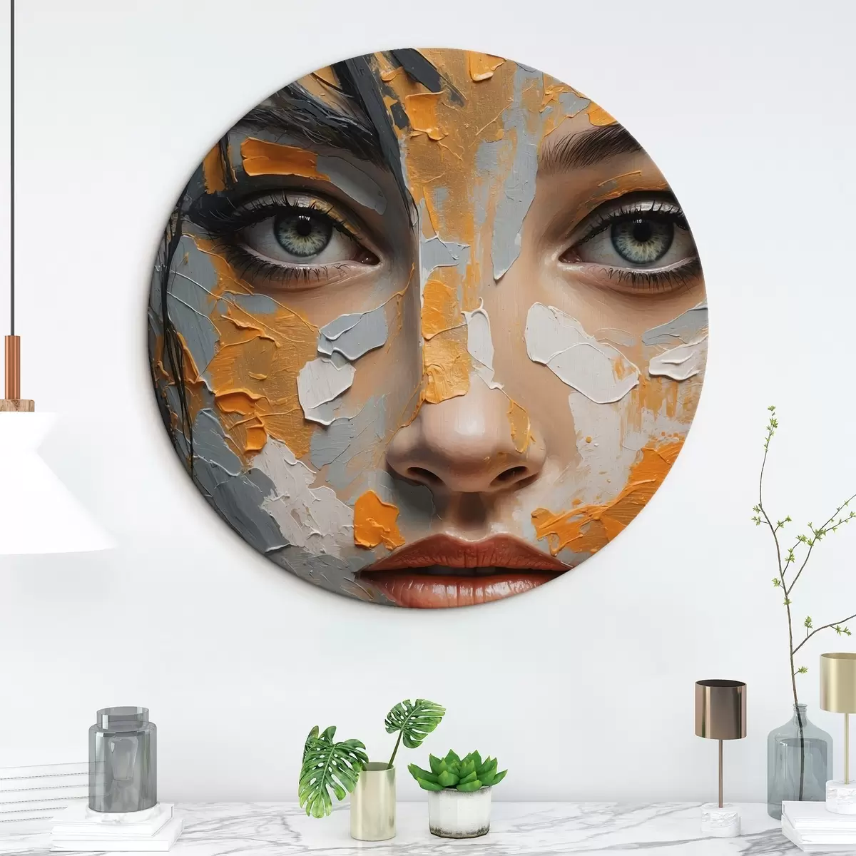 Кругла картина Обличчя дівчини розмальоване білою та жовтою фарбами r42259