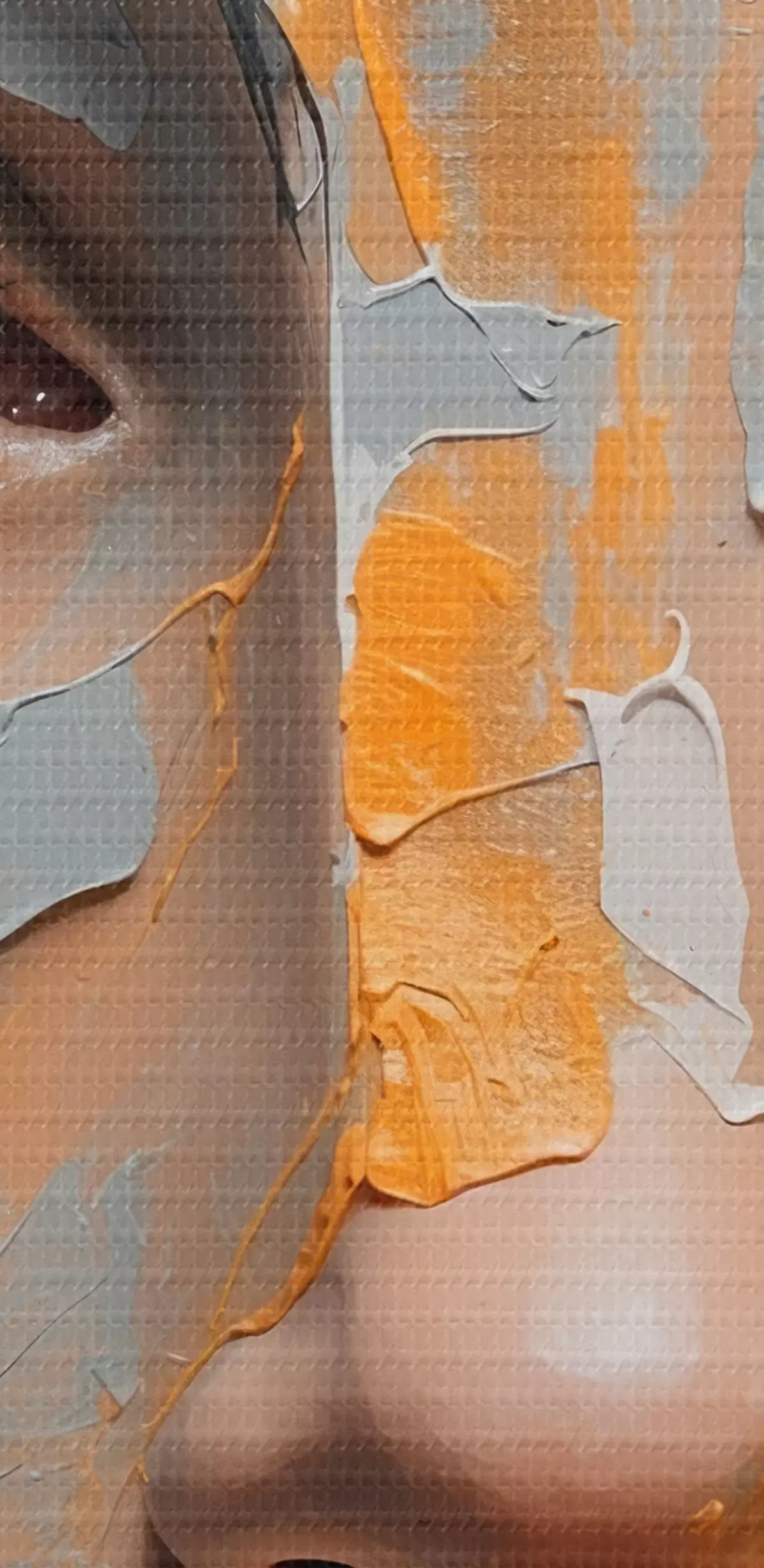 Кругла картина Обличчя дівчини розмальоване білою та жовтою фарбами Nr r42259