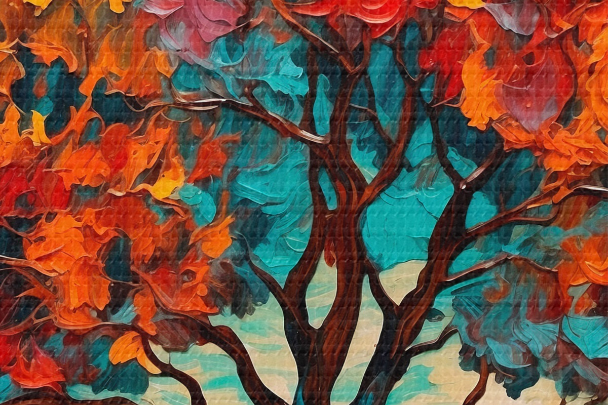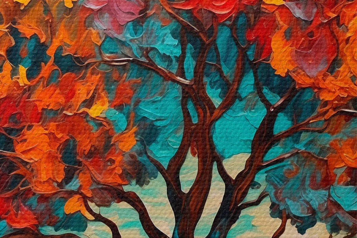 Кругла картина Дерево на помаранчево-синьому тлі в стилі олійного живопису Nr r42267