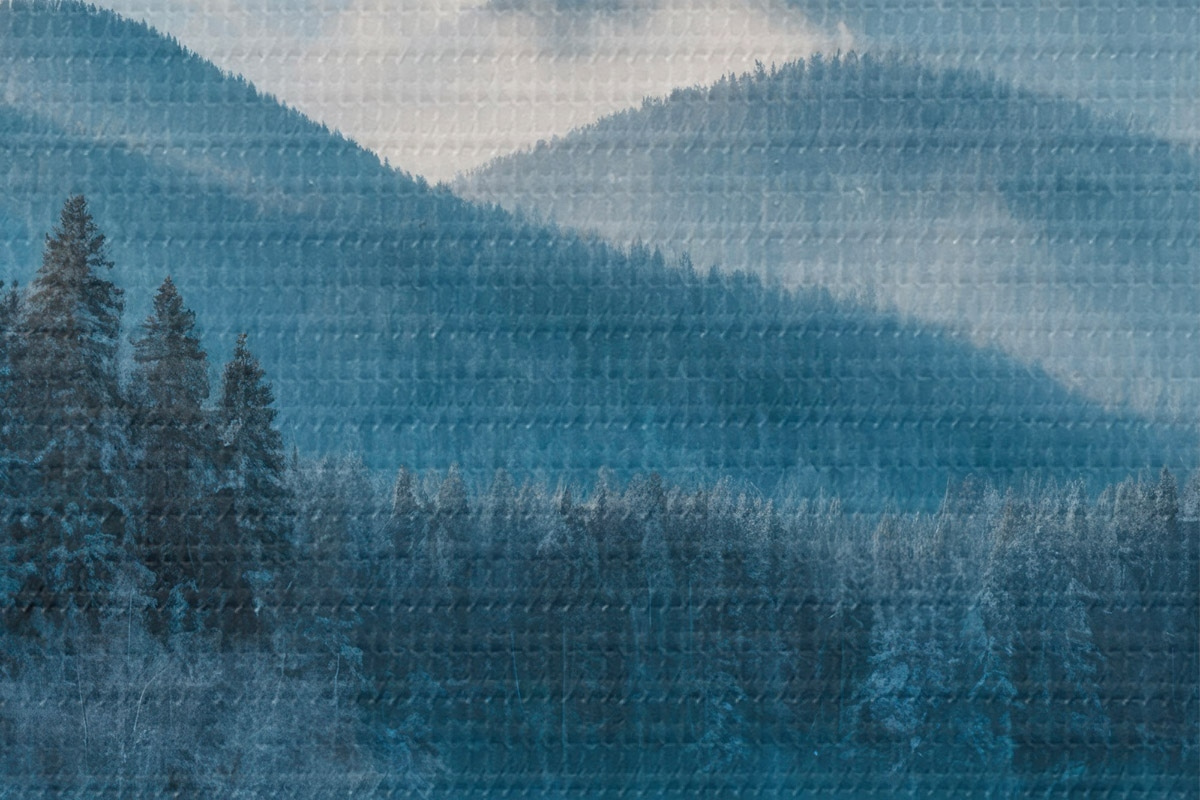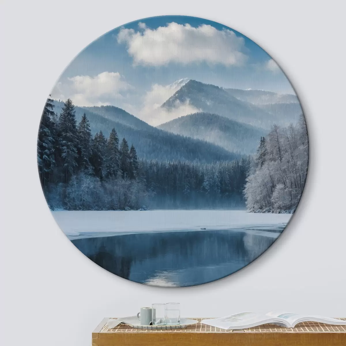 Кругла картина Вид на зимовий ліс і гори Nr r42278