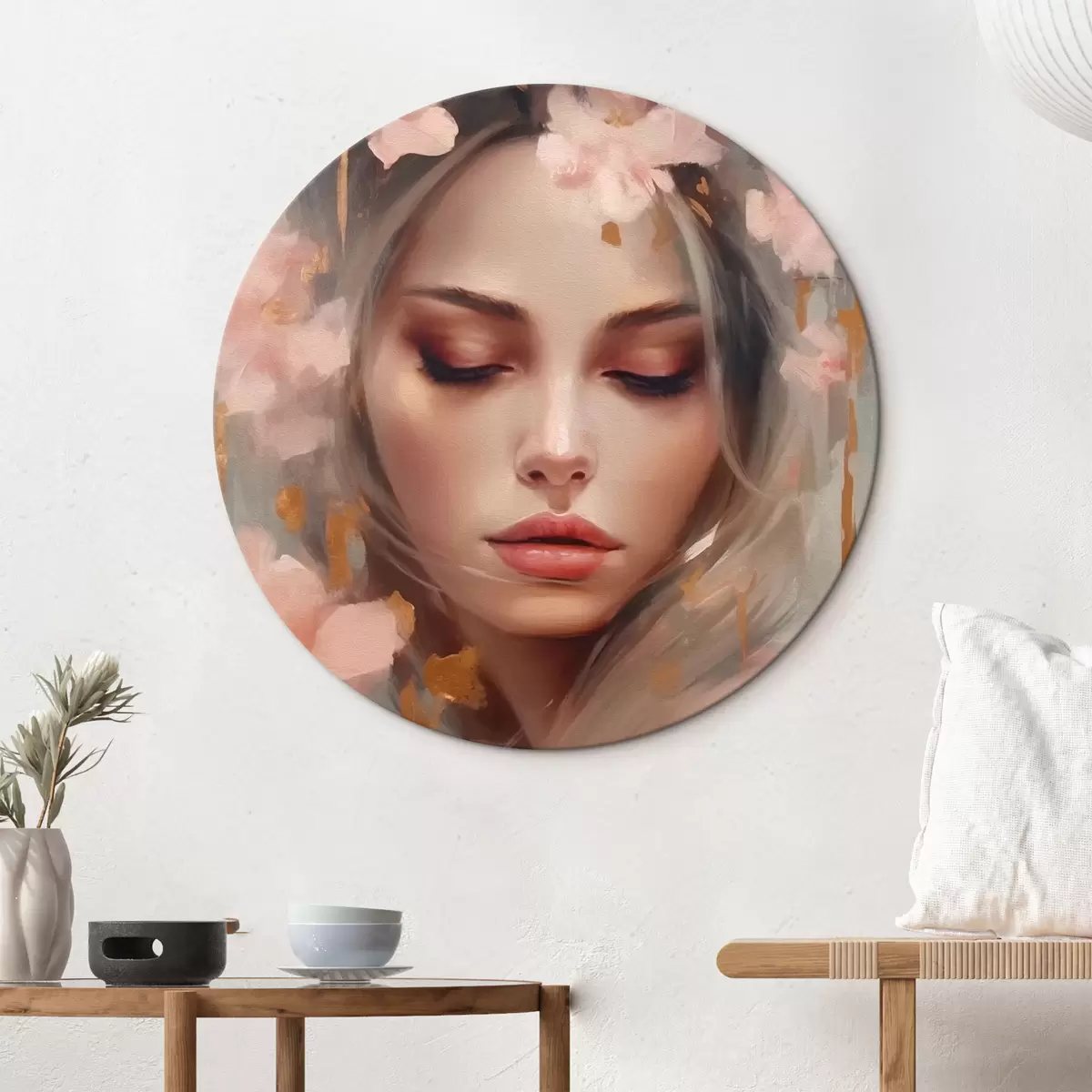 Кругла картина Красива дівчина і квіти r42299